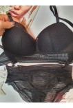Бюстгальтер бралет с эффектом пуш-ап, без кости. Выполнен из кружева. Трусики бразилиана.