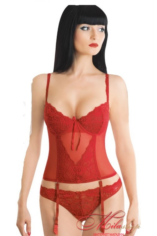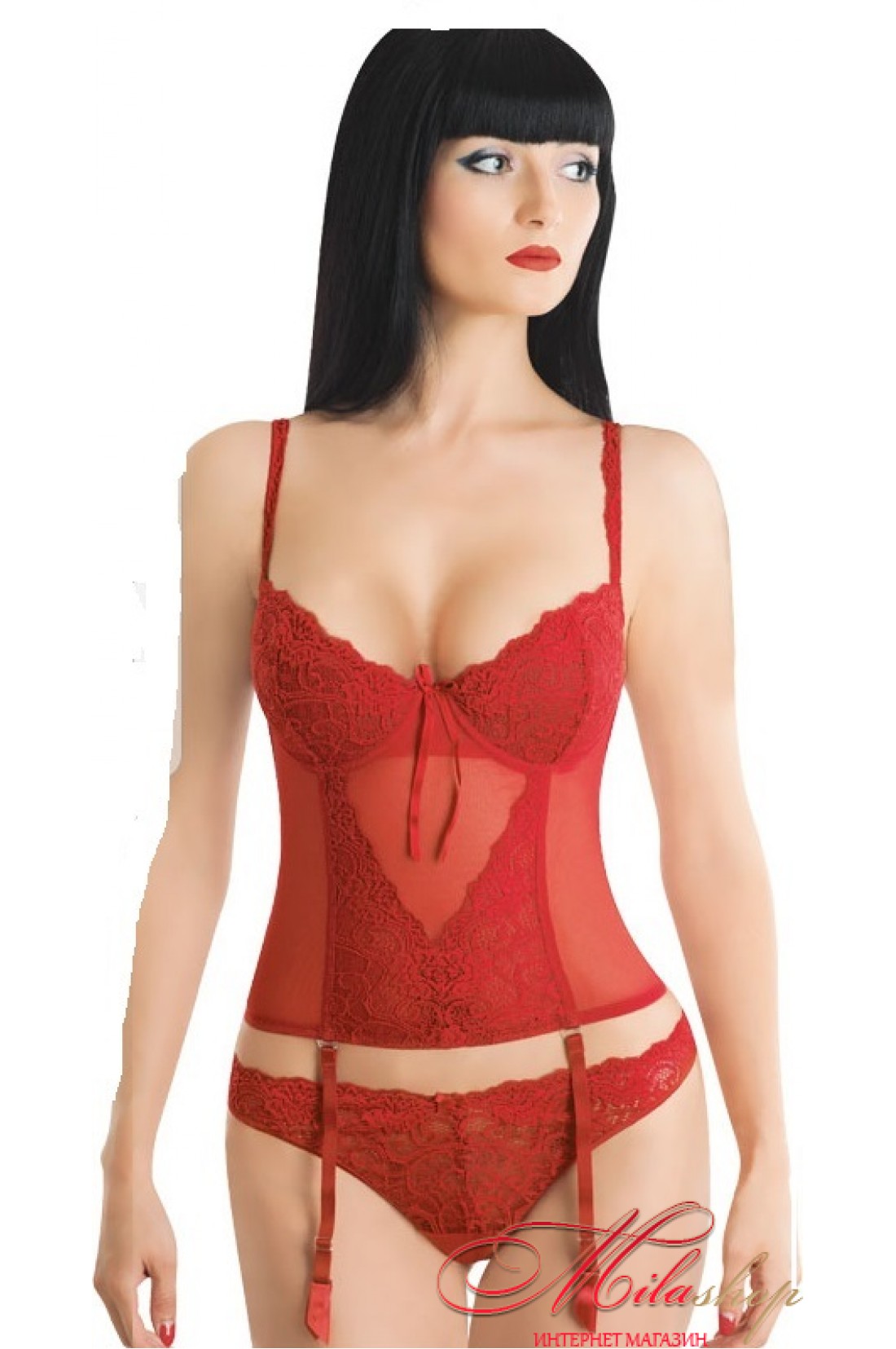 Эротический корсет из микросеточки и кружева. На каркасах. Чашки из эластичного кружева на поролоне с х/б подкладкой, по спинке в виде застёжки шнуровка. Пажики для чулочков. В комплекте трусики-стринг с заниженной талией Ангела 789/1