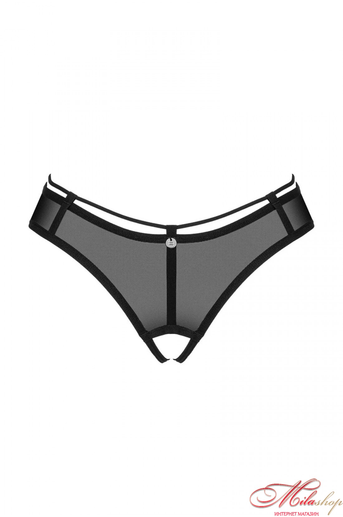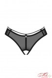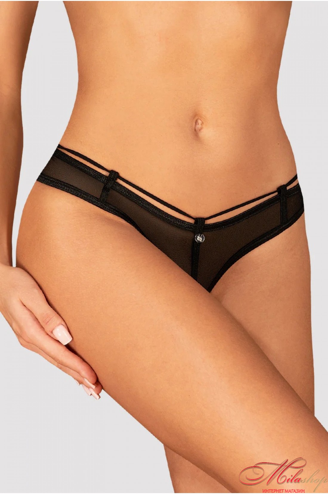 Трусики стринги из деликатной прозрачной микросетки с декоративным шнурком в петлях, металлическая подвеска с логотипом, разрез в ласточке.
