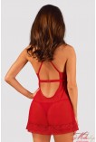 Бебидол из полупрозрачной микросетки, кружевной лиф с мягкими чашечками на косточках поддерживает грудь и не прибавляет объем, застегивается на спине крючками, бретели не отстегиваются, регулируются по длине, в комплекте стринги трусики. Рубашка бэби-долл, созданная из мягкого и эластичного материала насыщенного красного цвета, просто обещает обеспечить жаркую атмосферу. Бюстгальтер-халтер украшен вертикальной кружевной вставкой, через которую едва просвечивает сосок. Бретели направляются к шее, а сзади перекрещиваются и становятся совсем тоненькими, там и регулируются по длине. Форма бюстгальтера продумана так, чтобы полностью открыть округлость груди, но одновременно обеспечить им максимальное поддержание благодаря косточкам в лифе, бретелькам и многоступенчатой застежке сзади. Также бюст украшен маленькой подвеской серебряного цвета с лейблом польского бренда Obsessive. От бюстгальтера вниз струится яркая прозрачная ткань, подчеркивая красоту фигуры. Раздел рубашки украшен кружевом из мелкой сетки и красивым цветочным узором. Спинка открыта.