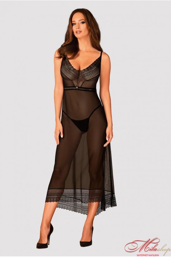 Приталенная эротическая сорочка, кружевной лиф без косточек, бретели не отстегиваются, регулируются по длине, длина ниже колена, низ рубашки украшен кружевом, трусики в комплект не входят. Асимметричный крой этой удивительной рубашки подчеркивает силуэт и придает характер всему образу. Лиф с глубоким вырезом оформлен мягкой тканью с кружевным рисунком, красиво очерчивает грудь. Сквозь рисунок лифа можно увидеть возбужденные соски и ореолы. Для удобства бретельки можно отрегулировать. Полупрозрачный материал легкой волной струится по телу, показывая животик, ягодицы, стройные ножки и нежные интимные места. Спинка сорочки открыта, все кружевные вставки здесь сходятся, образуя красивый клиновидный рисунок. Кружево по краю подола придает нежности и напоминает о будуарности рубашки. Серебристый кулончик-медальон на сетчатом поясе на талии привлекает внимание и придает изысканную элегантность образу. Несмотря на откровенно сексуальный вид, длинная полупрозрачная сорочка идеально подойдет как домашняя одежда или аксессуар для сна за счет мягких материалов, из которых она сшита. Конечно, мы не можем обещать, что такая возбуждающая вещь задержится на вас долго. И это так тревожит!