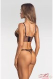 Комплект белья из полупрозрачной микросетки; мягкие чашки поддерживают грудь и подчеркивают природную форму груди; на косточках; плечевые бретели регулируются по длине; застегивается на спине крючками; трусики стринги со средней линией талии; вырез в ластовице.