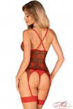 Обтягивающий корсет с новогодним принтом, мягкие чашки без косточек поддерживают грудь и не добавляют объем, бретели регулируются по длине, перекрещиваются на спине, без застежек, одевается благодаря эластичности ткани, пажи для чулок регулируются по длине, трусики стринги.