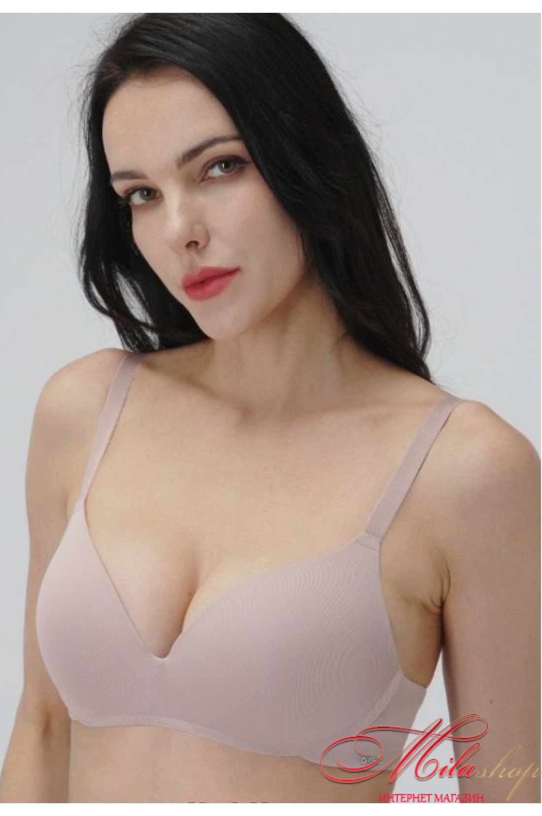 Стильный и комфортный бюстгальтер без косточек с гладкой формованной чашкой с эффектом пуш-ап. Бретели не отстегиваются, регулируются по длине. Пояс гладкий, на спине застежка на крючки.