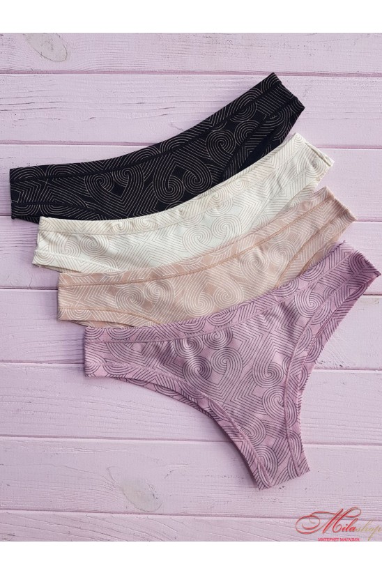 Трусики-бразилиана из хлопка. Конструкция трусиков максимально приближенная к безшовным. Пояс с эластичной резиновой тесьмой. Средняя линия талии.