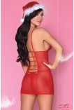Игровой костюм, который поможет скрасить зимние вечера. Состоит из платья мини на тонких бретелях, трусиков стрингов. Полупрозрачное кружевное платье - с мягкими чашечками и глубоким вырезом на спине с продольными эластичными ремешками. На бретелях и между чашечками - белые маленькие бантики.
