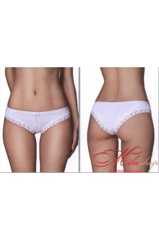 Женские трусики из хлопка. Средняя линия талии. Отделка - кружевная резинка в нижней части трусиков. Комфортный пояс, украшен бантиком.