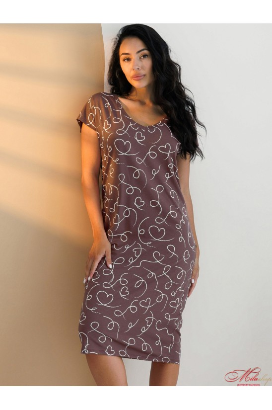 100% коттон. Эта ночная рубашка – как личное пространство, где царит покой. Она создана для тех моментов, когда хочется снять напряжение дня, завернуться в мягкость и просто быть. Натуральный хлопок нежно касается кожи, даря ощущение легкости и свободы. Кофейный оттенок – теплый, глубокий, как вечерний свет в комнате, а белый принт с сердцами – как напоминание о заботе, которую стоит дарить себе каждый день. Короткий рукав, свободный крой, деликатная длина – все продумано для максимального комфорта. Идеальна для вечеров с книгой, медленных утренников или минут, когда хочется тишины. Купить женскую ночную рубашку из натурального хлопка – это выбор в пользу себя. Заказать онлайн легко – несколько кликов, и уют уже направляется к вам.
