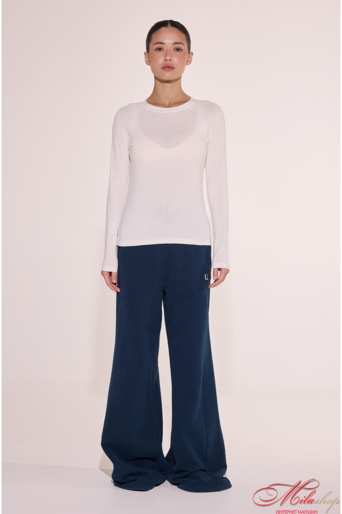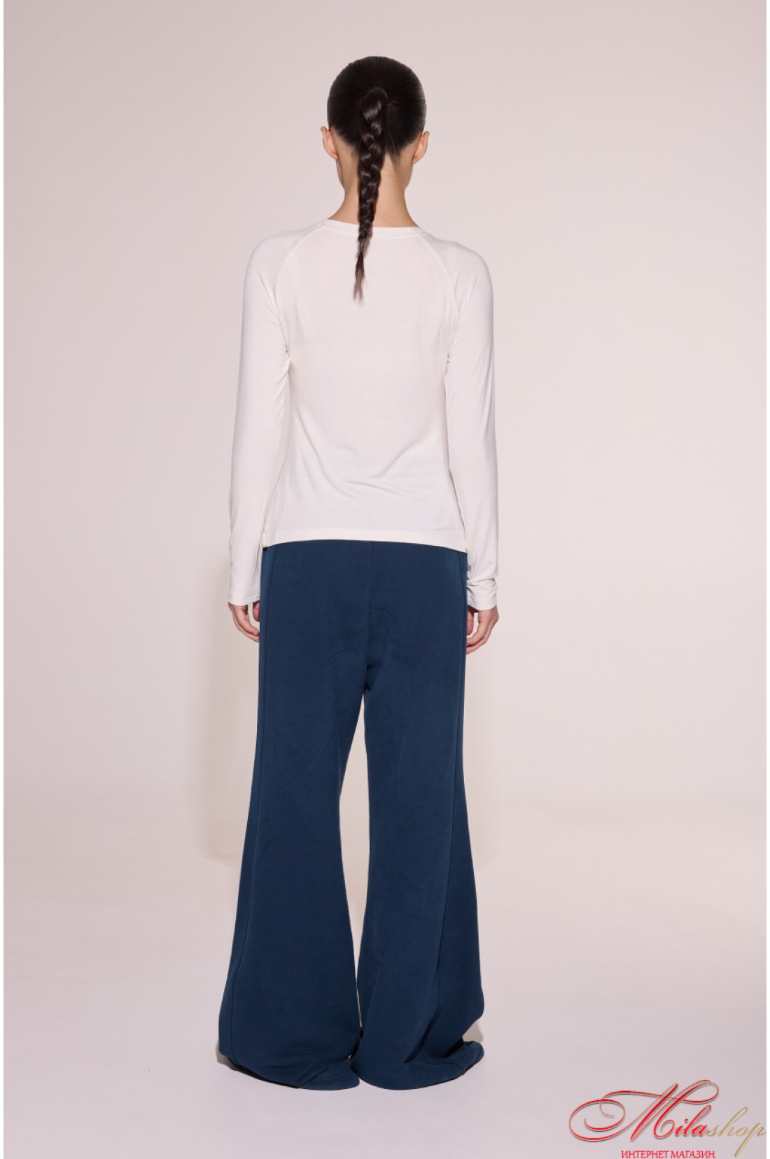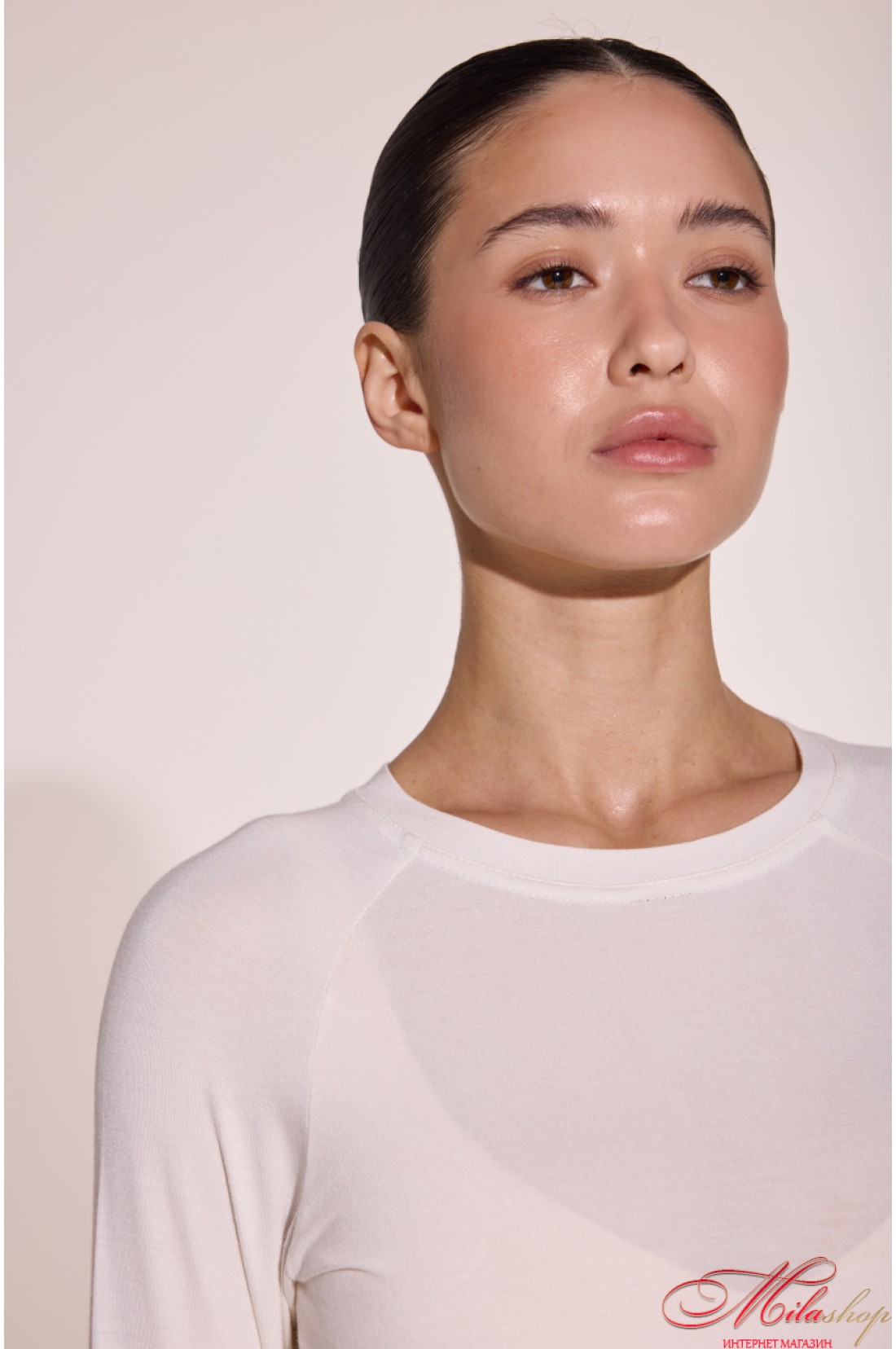 Лонгслив слим-силуэта сшит из нежного вискозного трикотажа. Модель имеет удлиненный рукав-реглан и овальную горловину с широкой бейкой. Легкая эластичная ткань обеспечивает комфортное прилегание к телу. Состав ткани: 97% вискоза, 3% эластан.