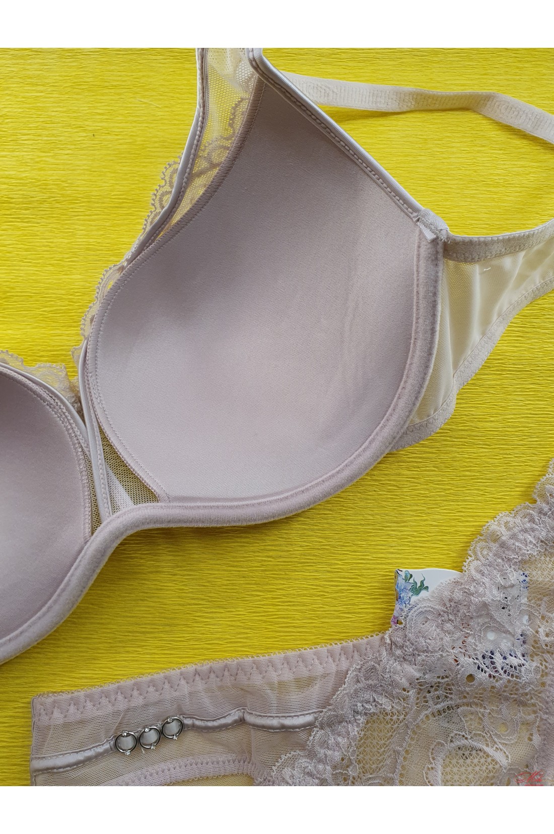 Прекрасный комплект, бюстгальтер и трусики украшены кружевом и сетчатым полотном, очаровательная перемычка между чашками, трусики слипы. Хорошо собирает и поддерживает грудь.