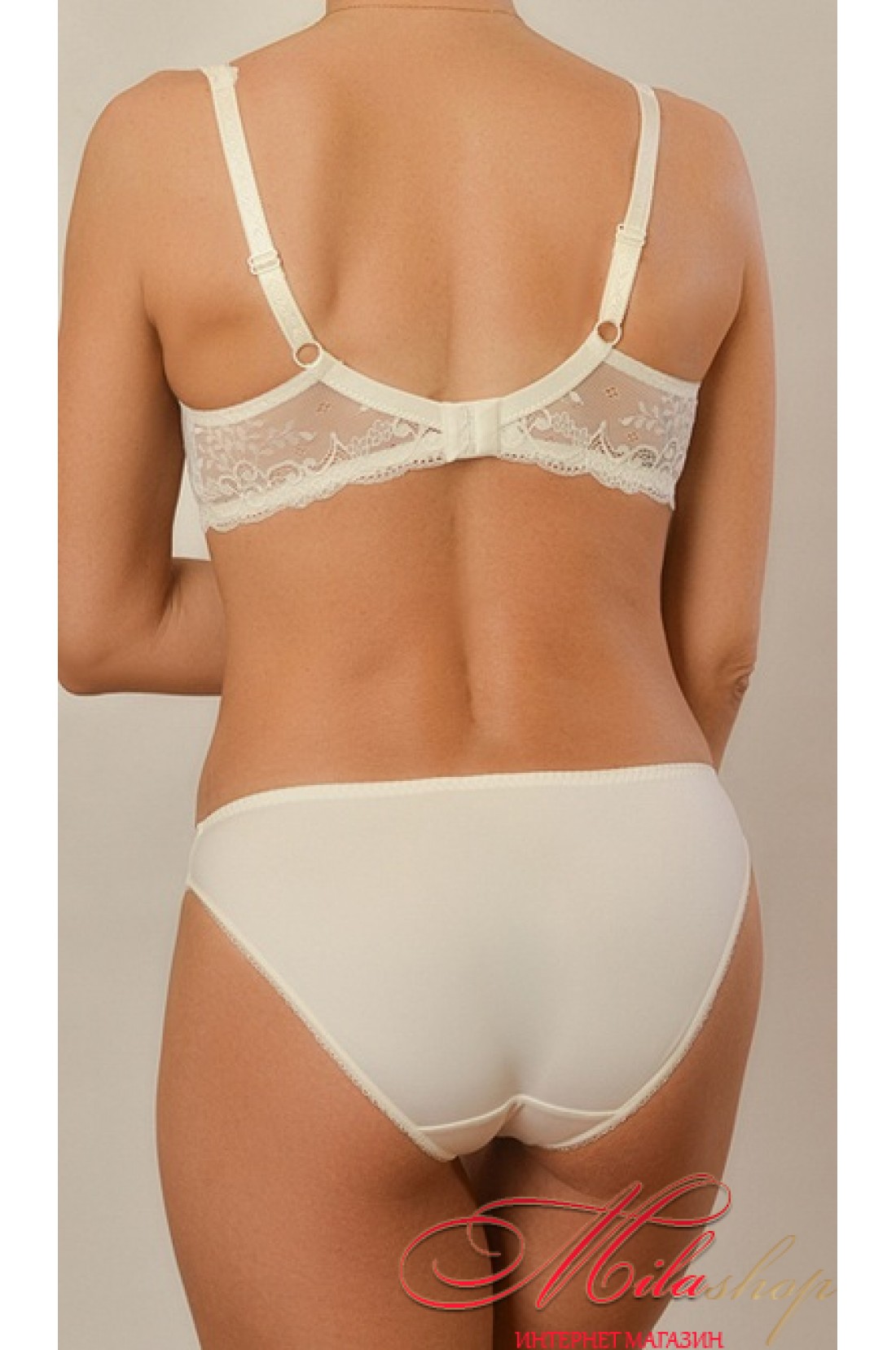 Бюстгальтер - балконет на каркасах, полностью выполнен из элегантного кружева с нежным цветочным узором. Эластичное кружево в верхней части чашек красиво ложится на грудь, подчеркивая линию декольте. Для более плотного прилегания к груди с внутренней стороны кружева проложена резинка. Низ чашек уплотнён тонким поролоном, таким образом отлично поддерживая и формируя грудь, но не добавляя дополнительного объема. Внутренняя часть чашек изнутри продублирована мягким на ощупь хлопком. Модель красиво приподнимает и поддерживает грудь, придавая ей соблазнительную форму. VALMIR.A (Вальмира) – женское белье производства Латвия.