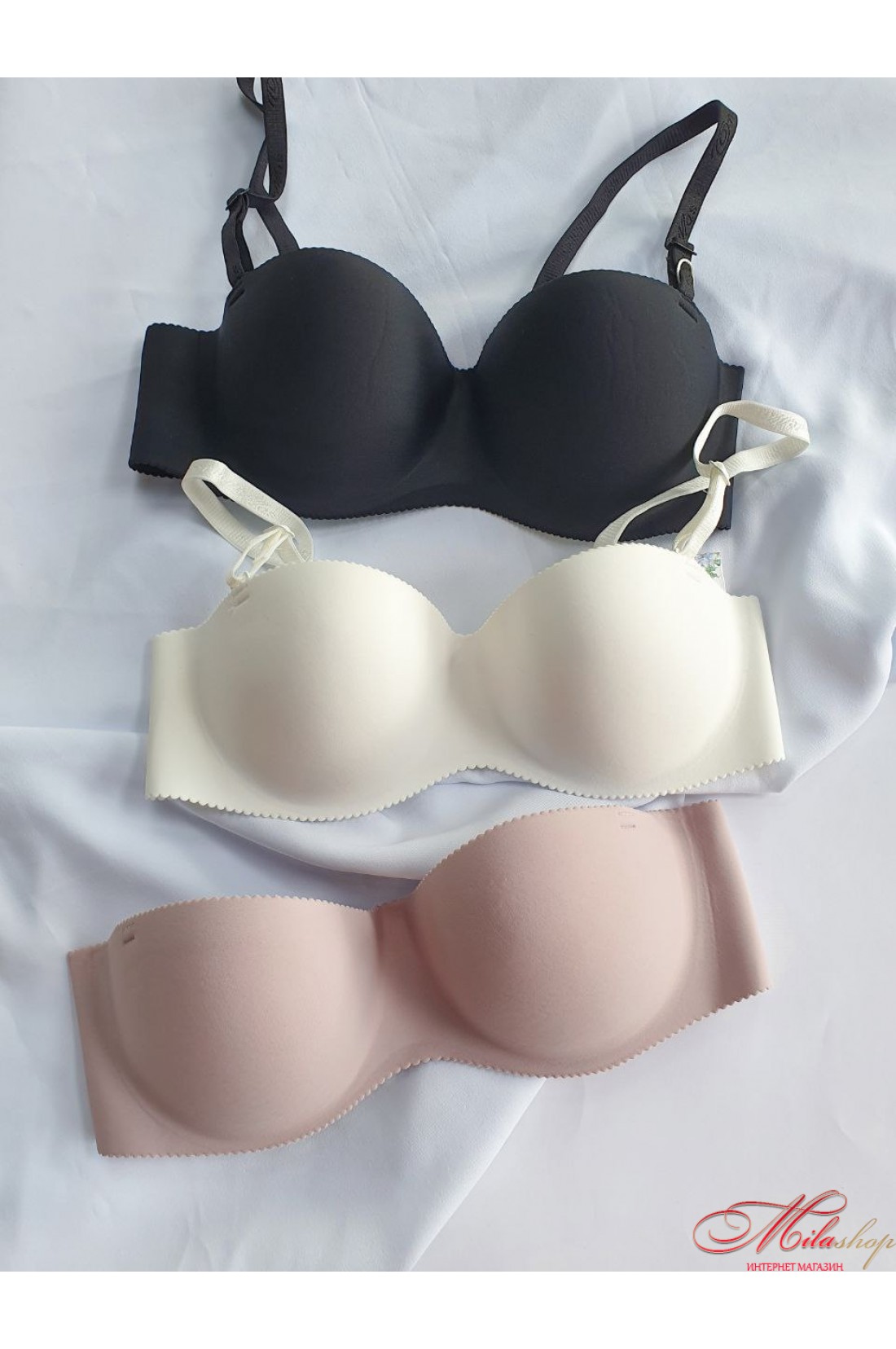 Бесшовный бюстгальтер-анжелика. Практически не заметен под одеждой, можно носить без бретелей! Есть небельшой push-up, чашки на кости.