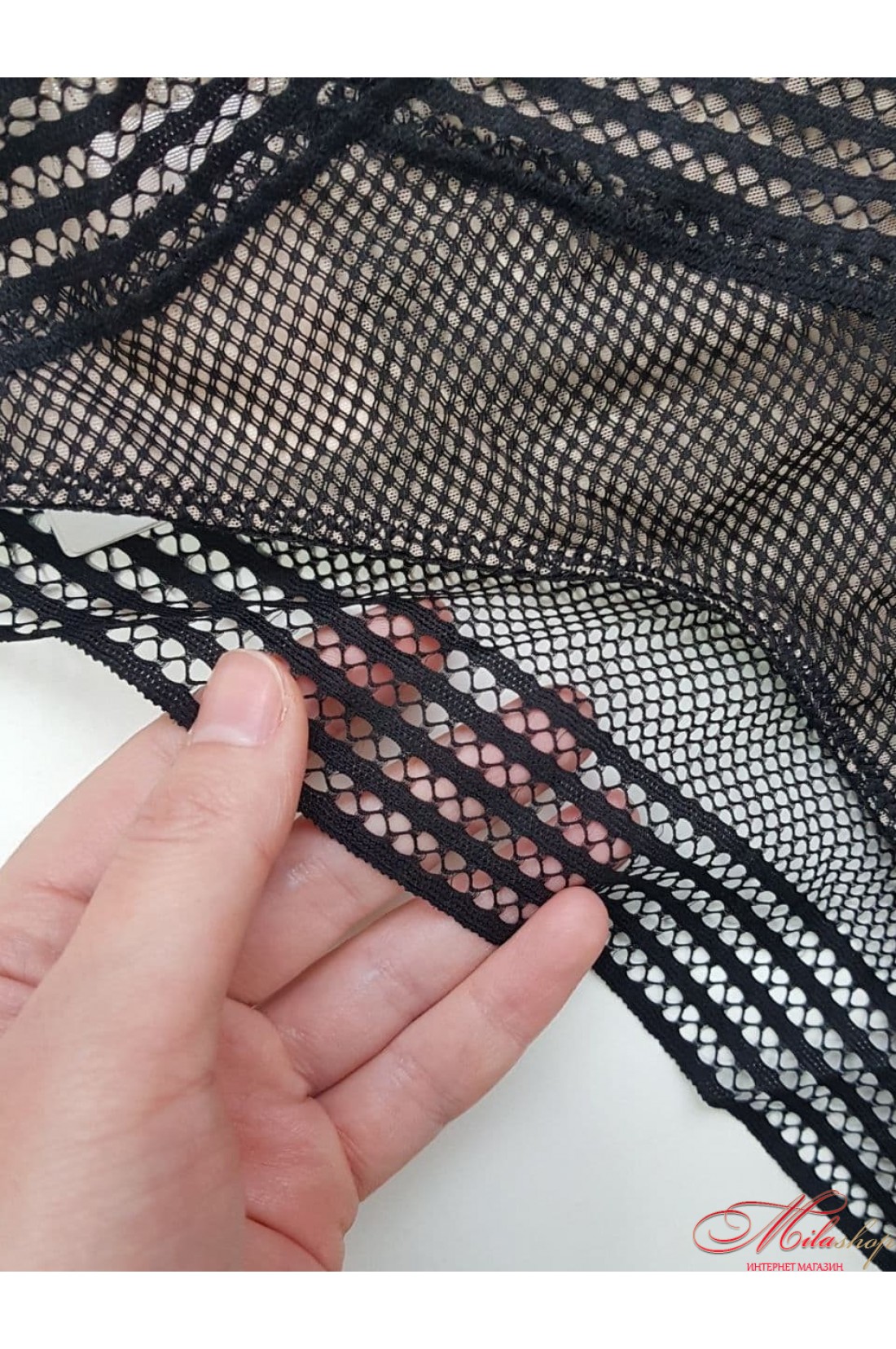 Трусики-бразилиана из кружева и кружевного полотна, с низкой линией талии. Задняя деталь со швом посередине и без резиночек по краю.