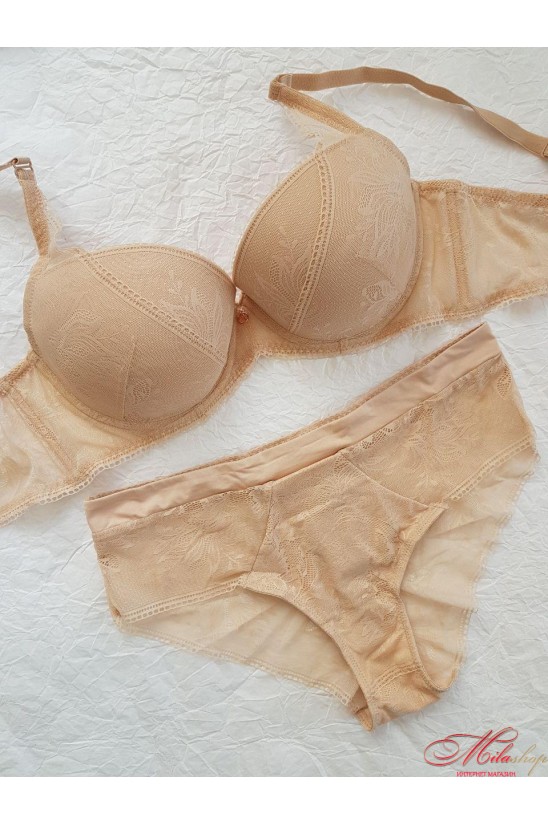 Модель балконет из нежного тонкого кружева, со съемным пуш-ап. С комфортным, невероятно красивым широким поясом-маечкой. Кружевная деталь чашки высокая, хорошо поддерживает грудь с боков и плавно переходит в бретель.