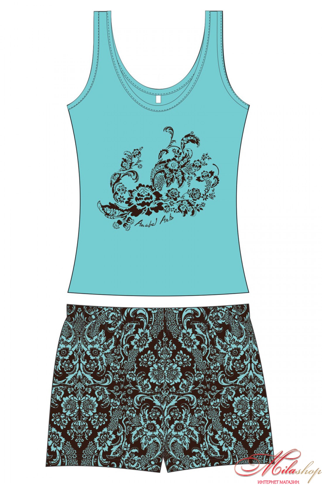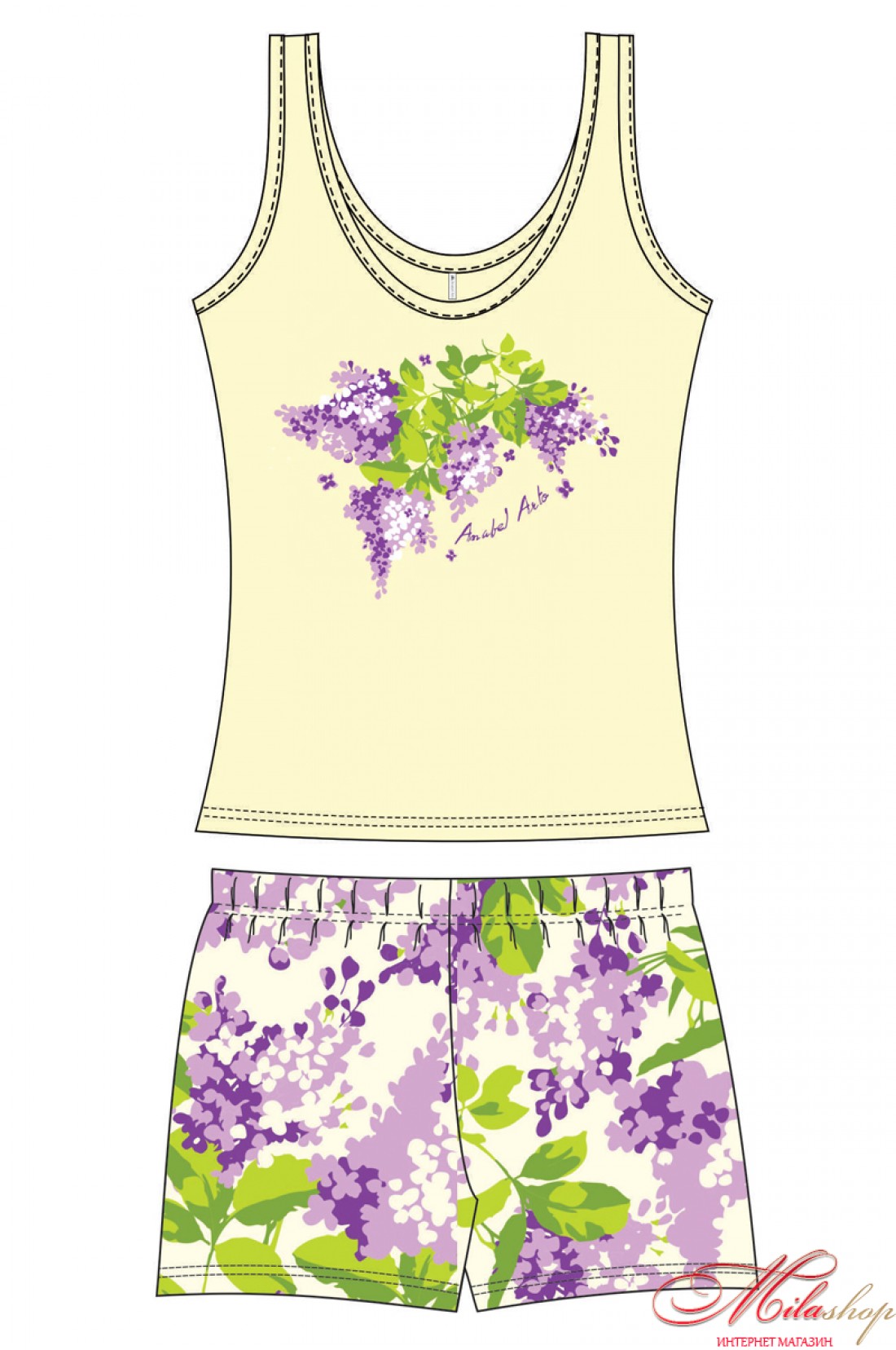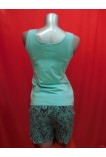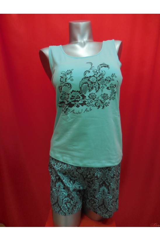 Уютный привлекательный комплект, состоящий из удлиненной майки на широких бретелях и прямых коротких принтованных шорт. Майка однотонная с оригинальным авторским принтом. Хлопок заботится о вашем комфорте, а принт создает отличное настроение.