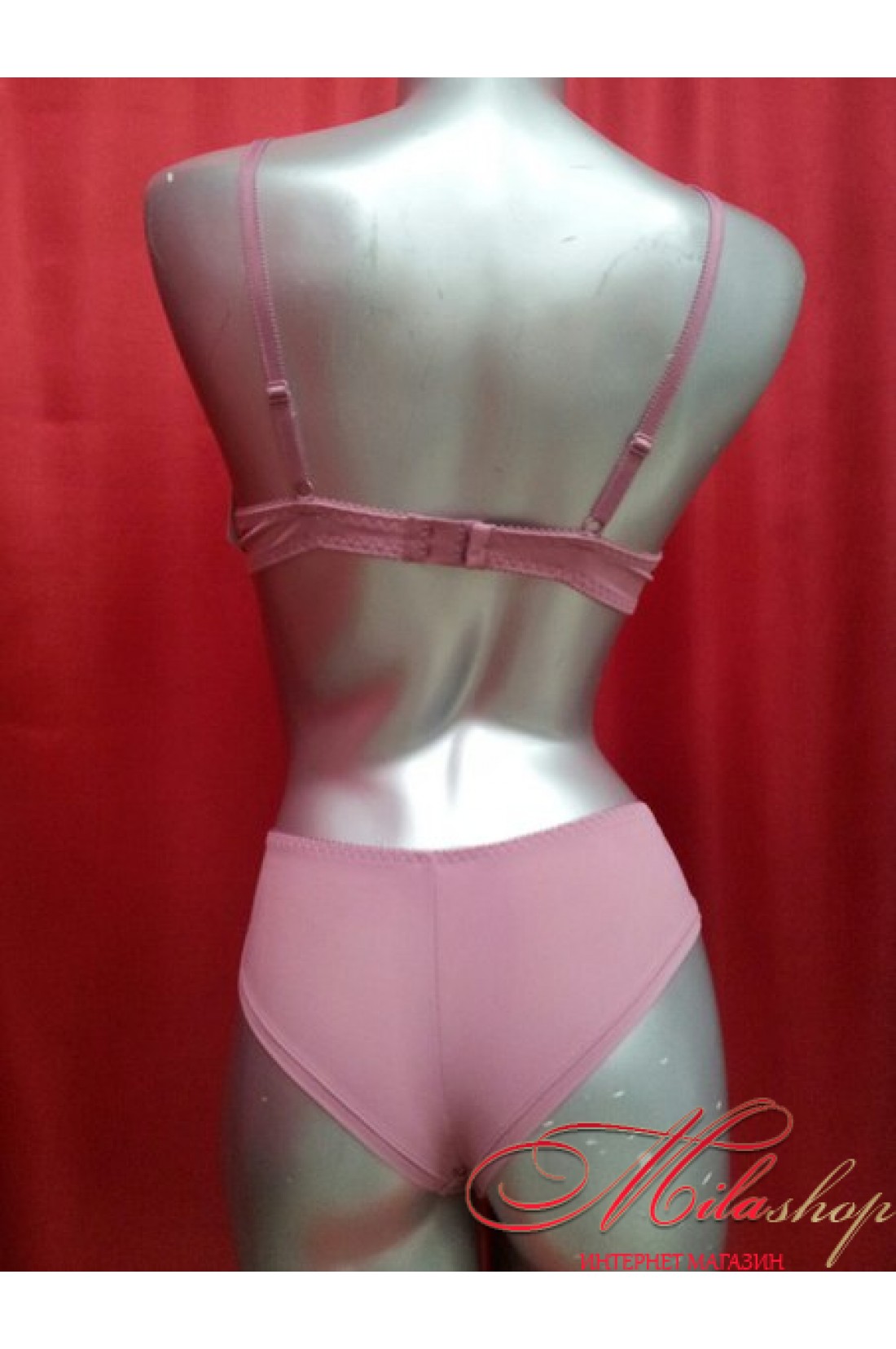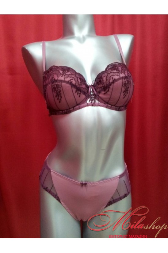 Бюстгальтер балконет с формованными чашками, без пуш-апа. Внутренняя деталь чашек из хлопка. Трусики слипы со средней линией талии. Украшен вышивкой.