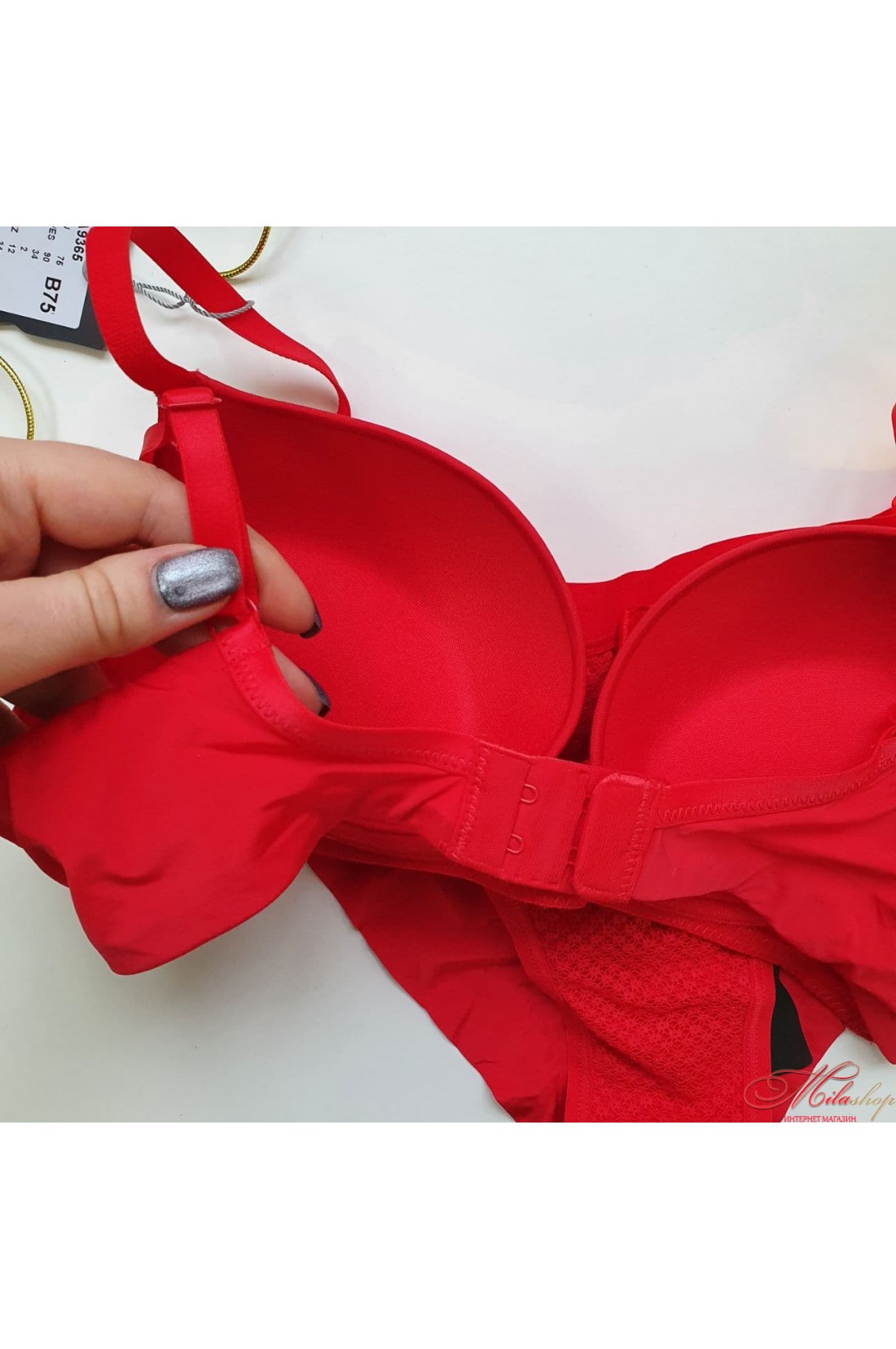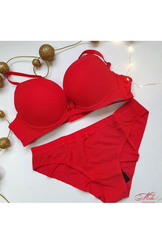 Очень красивый и комфортный комплект. Бюстгальтер с эффектом пуш-ап. Трусики-бразилиана спереди декорированы кружевным полотном, задняя деталь из микрофибры. Чашки бюстгальтера украшены кружевным полотном, поясок из гладкой микрофибры.