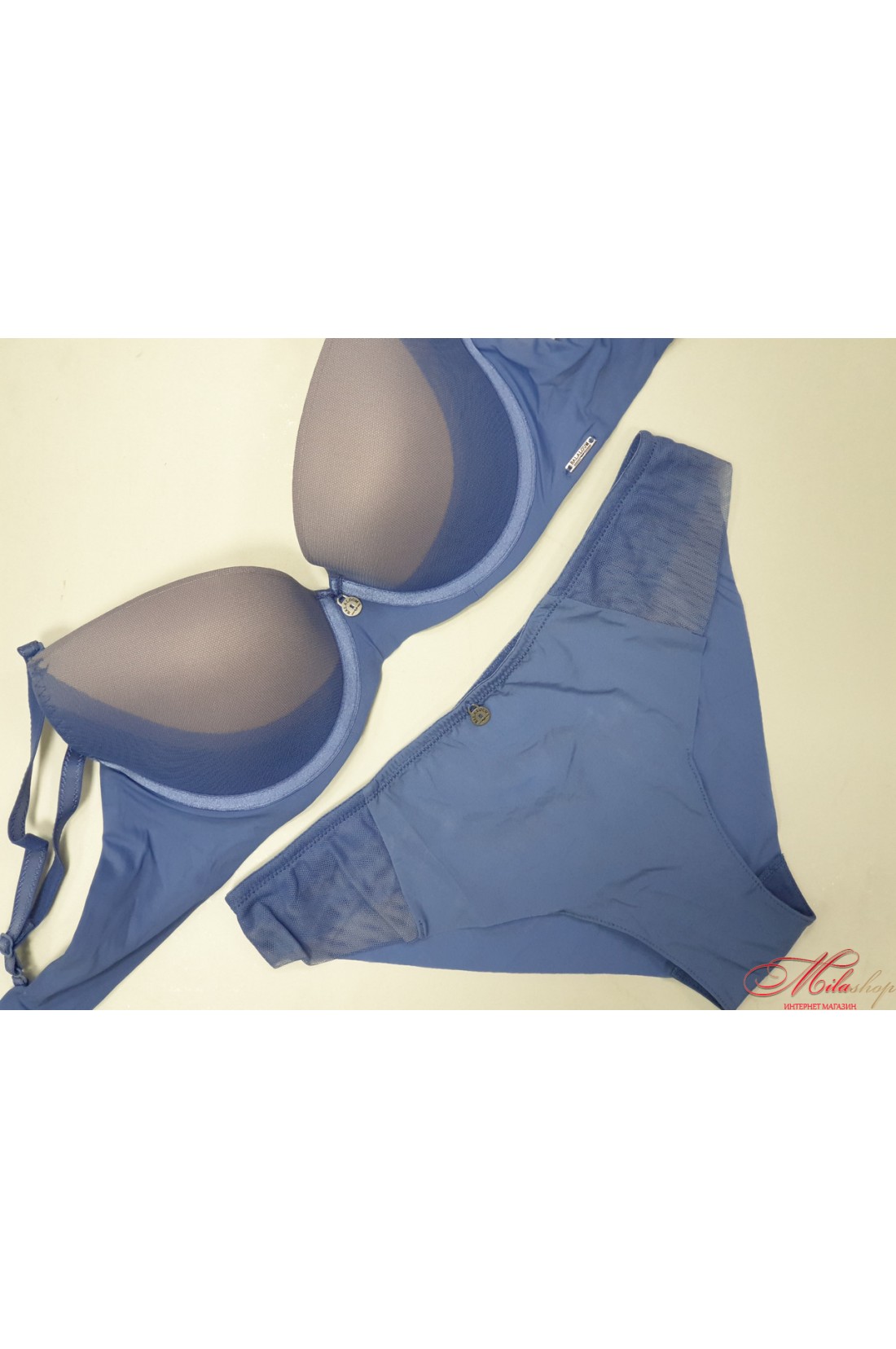 Бюстгальтер на тонком поролоне с небольшим корректором пуш-ап. Трусики-бразилиана с гладкими бесшовными краями.