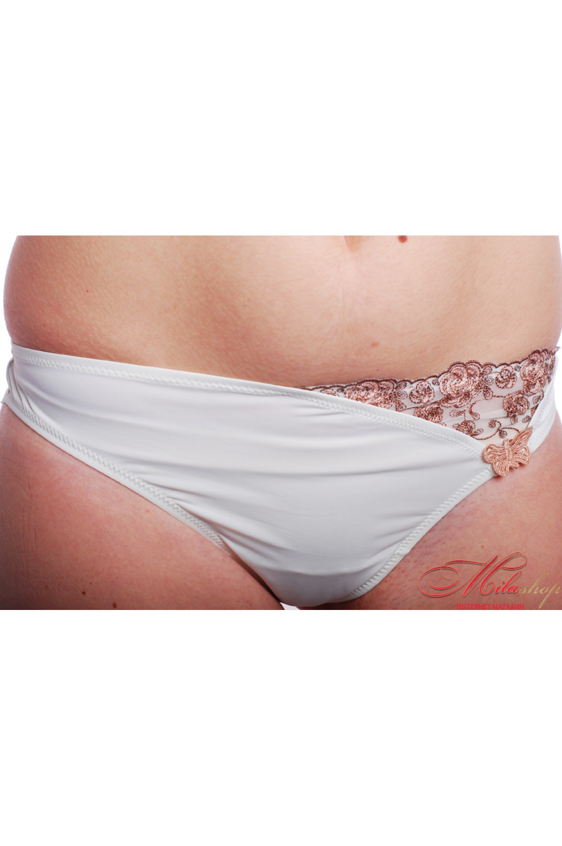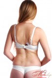 Комплект состоящий из бюстгальтера push-up с формованными поролоновыми чашками с фигурным краем. Нижняя часть чашки украшена сеткой с вышивкой, которая проходит по диагонали. Между чашками украшение из ленты и бабочка из вышивки. Цельный пояс «маечкой» с боковыми усилителями - из микрофибры, у основания чашки из сетки с вышивкой. Бюстгальтер со съемными широкими бретелями обеспечивает прекрасную поддержку обладательницам пышных форм. С увеличением размерного ряда ширина бретели увеличивается.