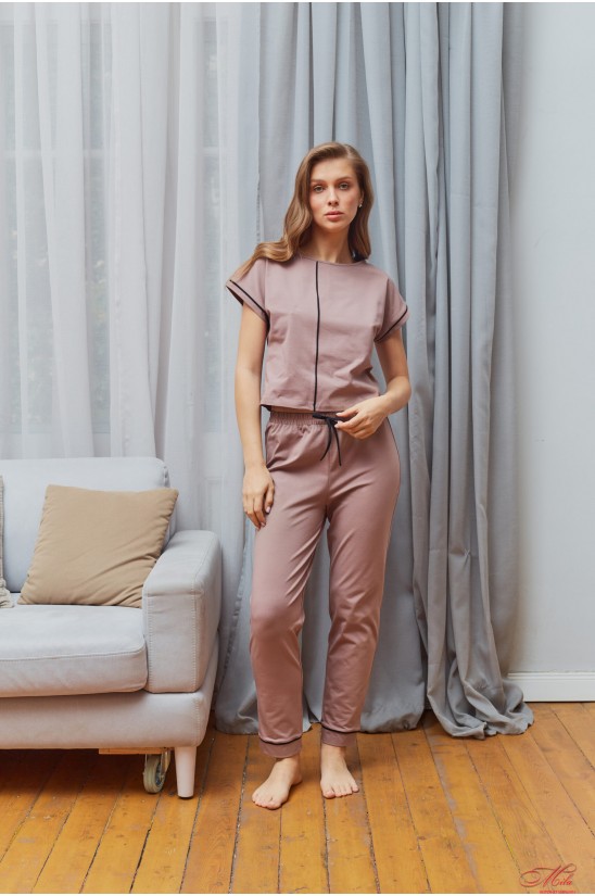 Комплект из хлопка футболка + штаны Your Touch EL-7140 капучино