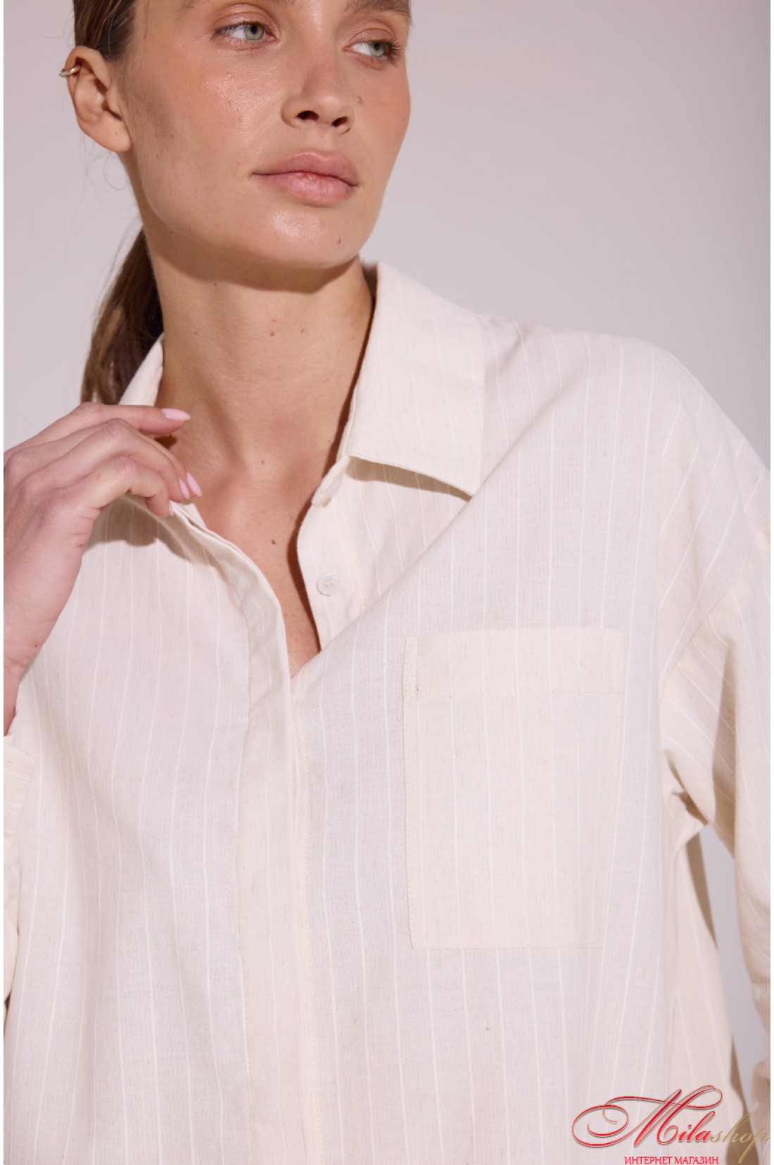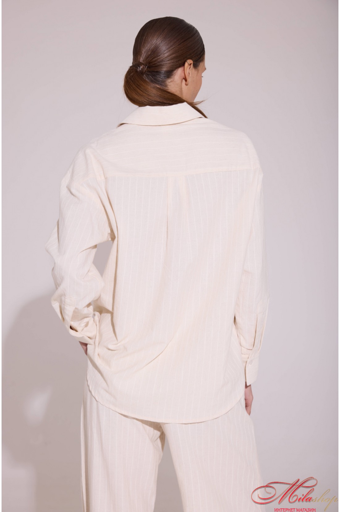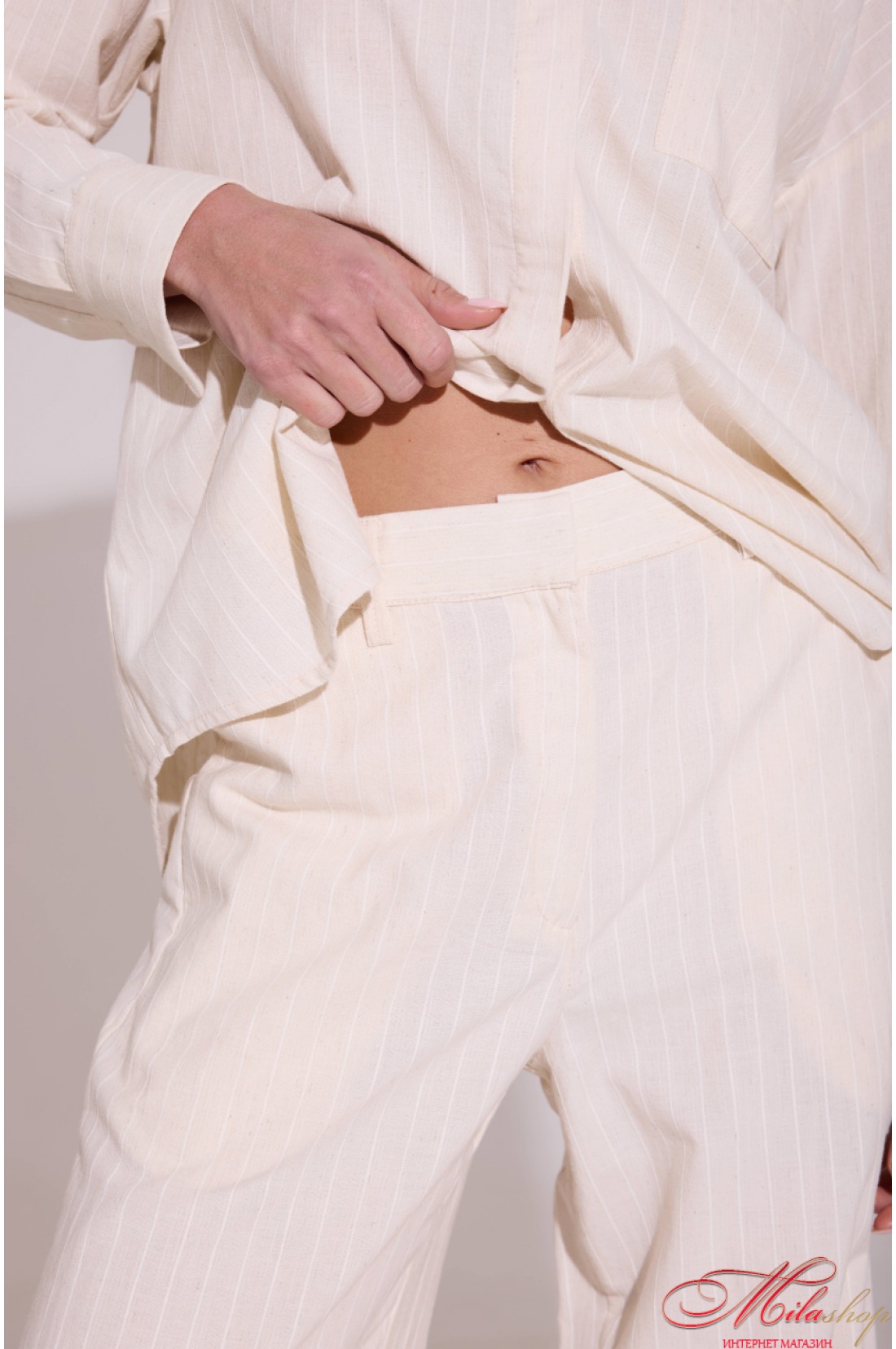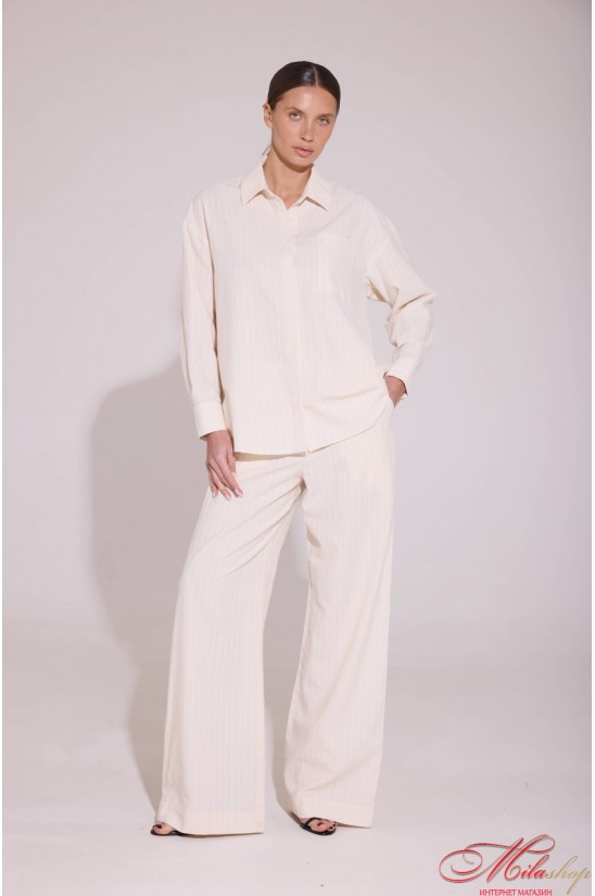 Этот костюм является воплощением сдержанной роскоши и универсального стиля, состоит из легкой рубашки с длинным рукавом и свободных брюк, создающих изящный силуэт для повседневных или формальных образов. Мягкая ткань красиво струится, подчеркивая женственность, а деликатная текстура и продуманные детали манжетов, воротника и посадки делают комплект по-настоящему универсальным. Модель отличается лаконичным дизайном рубашки с сокровенной четкой планкой и классическими разрезами на манжетах, а также удобными брюками с высокой посадкой, комфортным поясом на резинке, боковыми карманами, классической застежкой и талевыми шлевками. Такой комплект можно носить вместе или сочетать с другими вещами, создавая множество стильных образов на каждый день. Состав: 82% хлопок, 9% лен, 9% полиэстер.