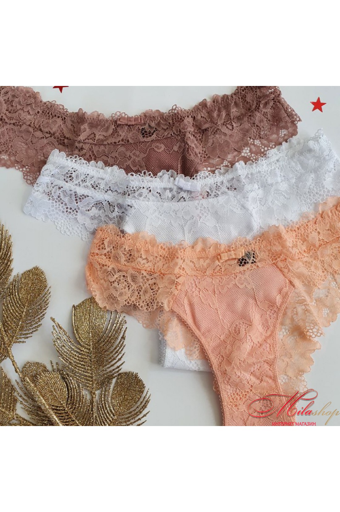 Роскошные бразильянки из кружева. Спереди украшены бантиком