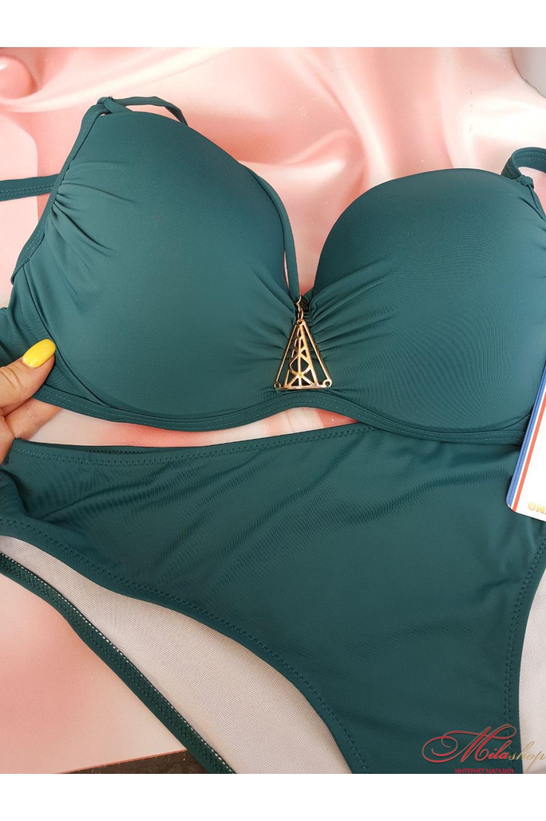 Плотная чашка без пуш-ап, бретели не съемные, на застежке.