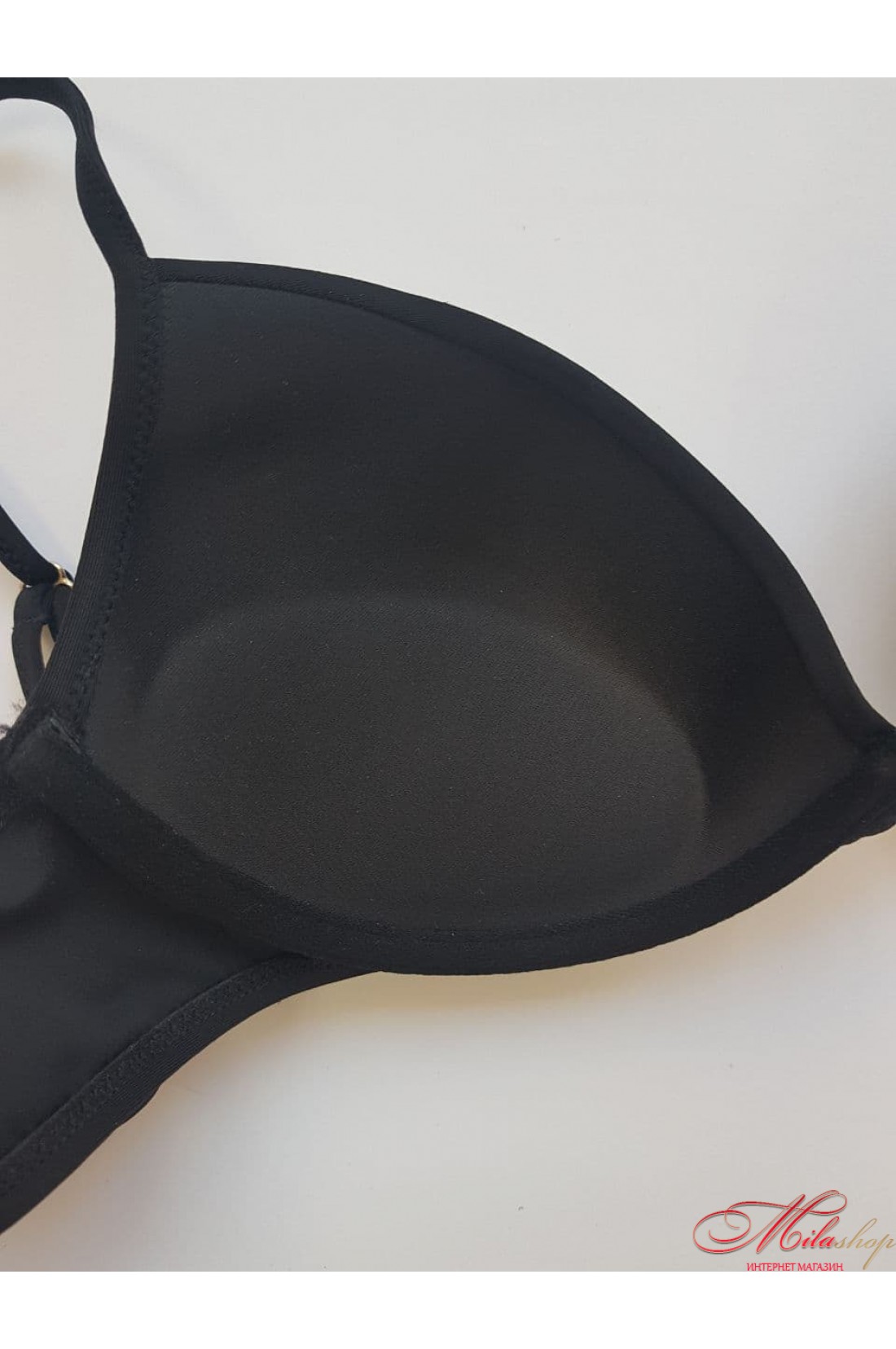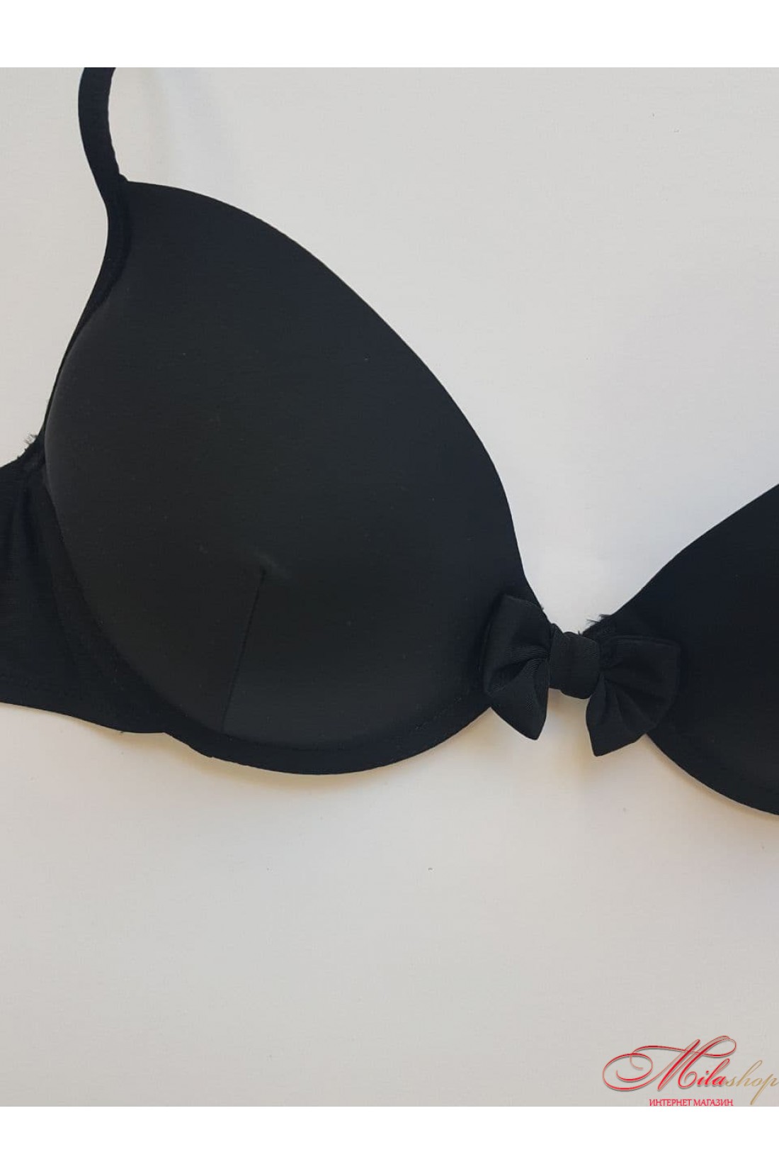 Купальный бюстгальтер с классической чашкой с пуш-ап. Спинка на застежке. Бретели не съемные, регулируются по длине. Между чашками бантик.