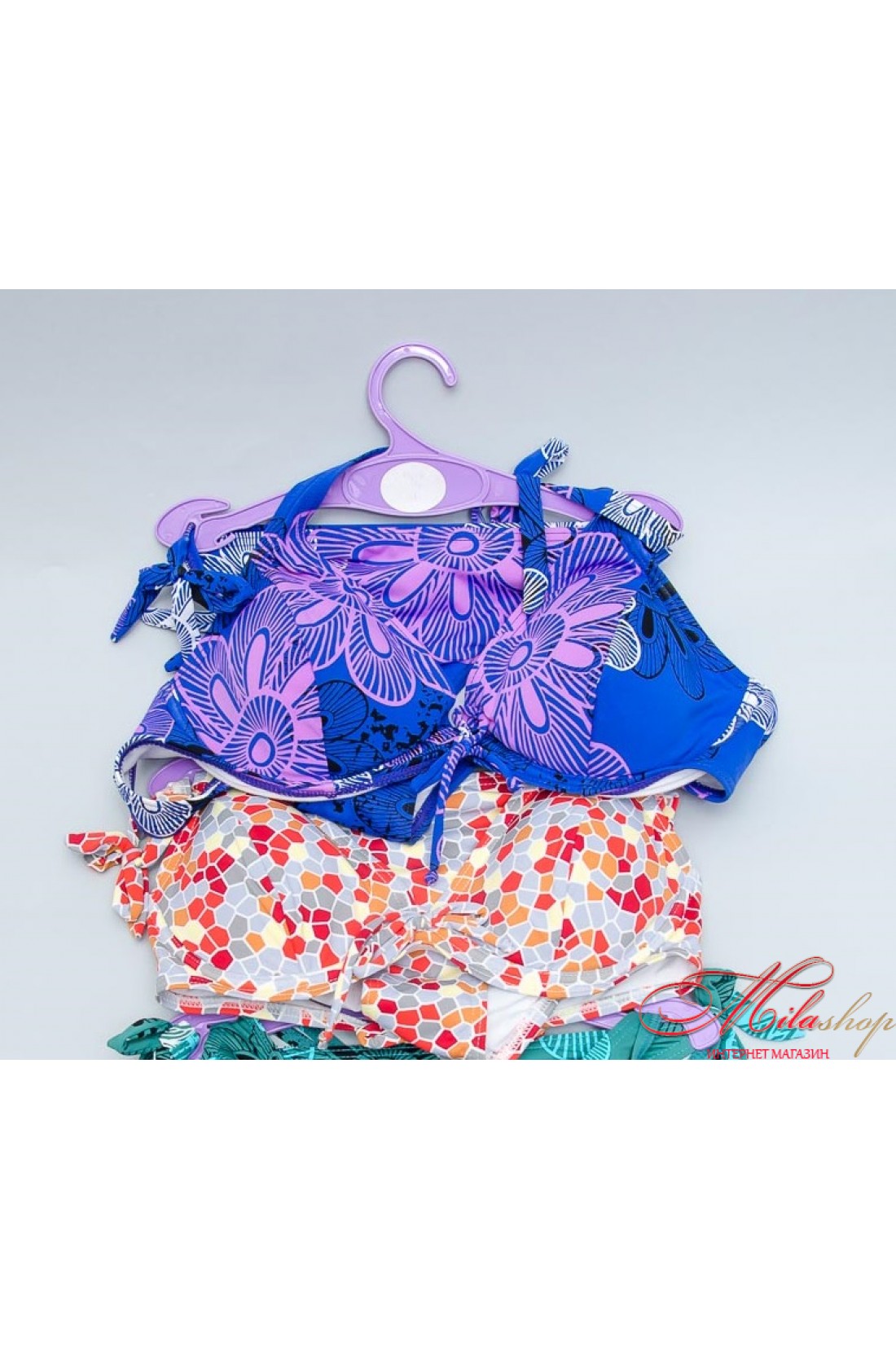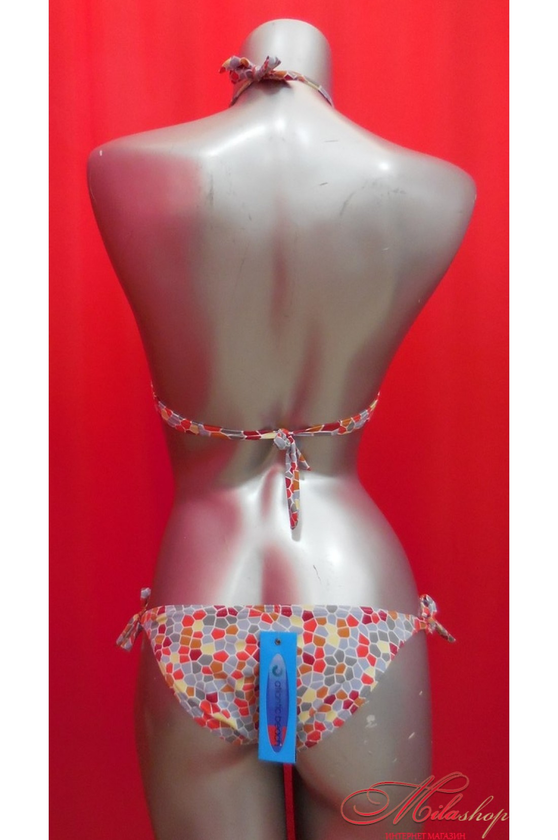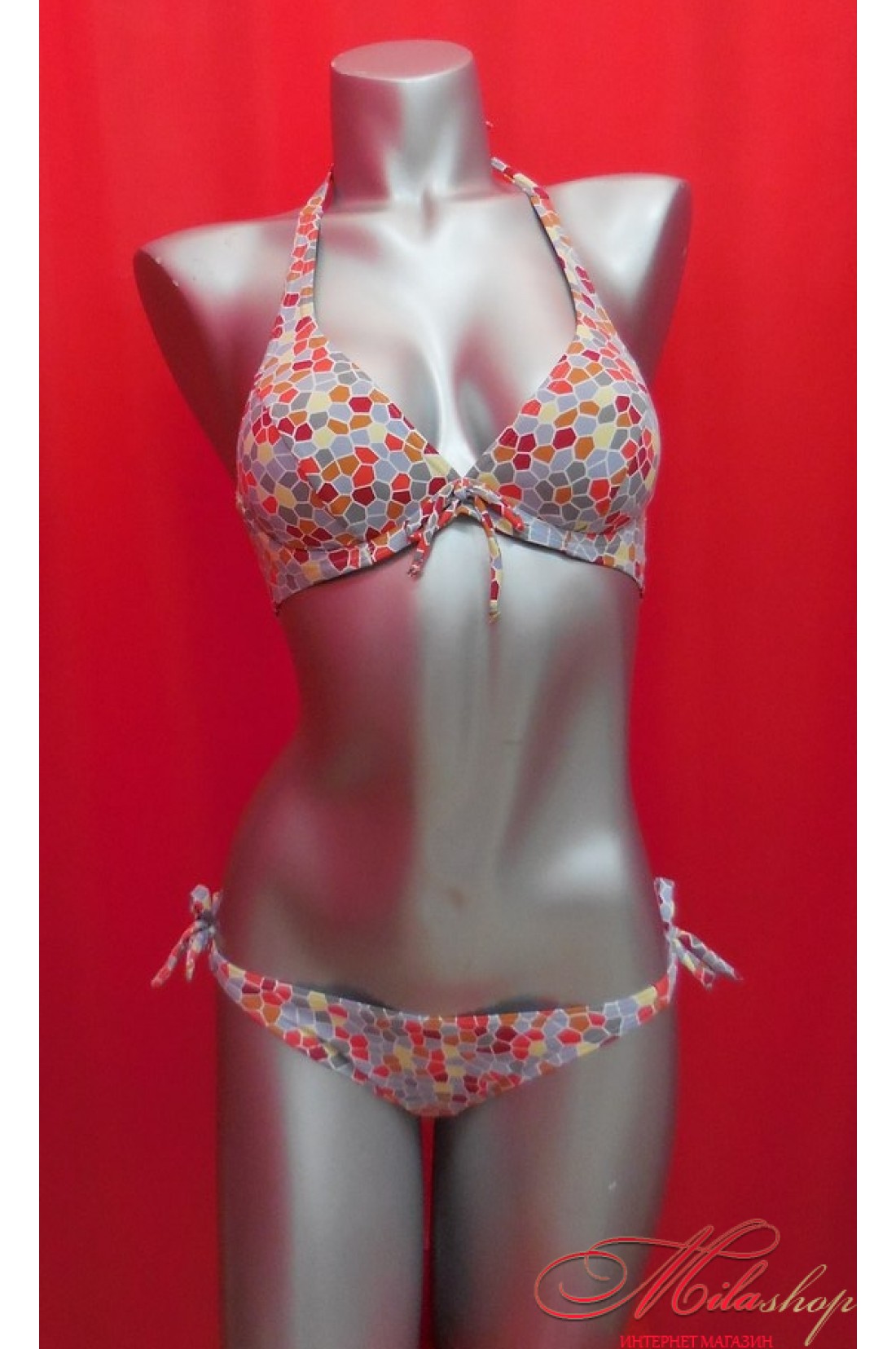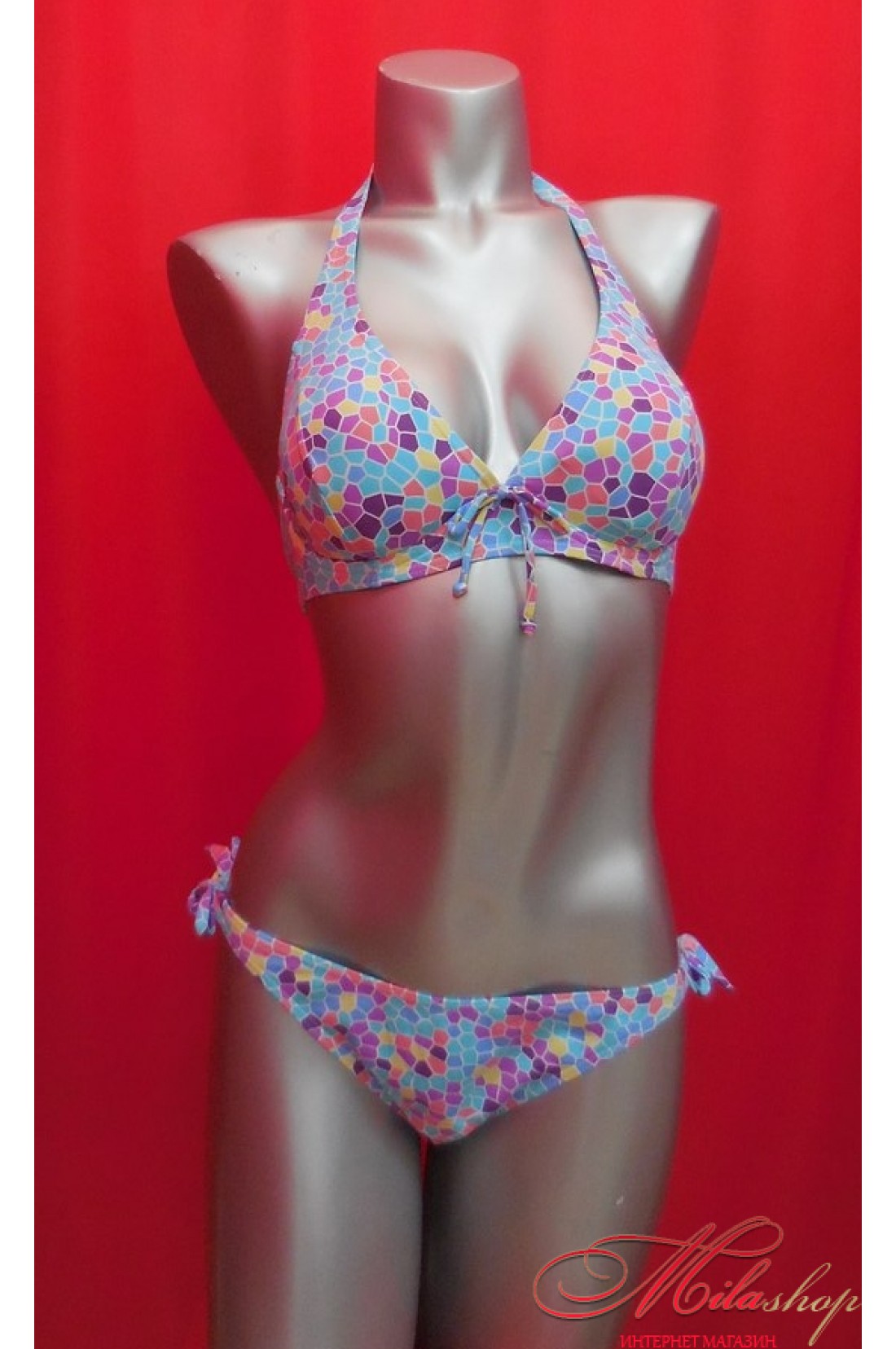 Купальник с мягкой чашкой с оригинальными узорами. Трусики на завязках по бокам. Эта модель хорошо подходит для стройных девушек с пышным бюстом.