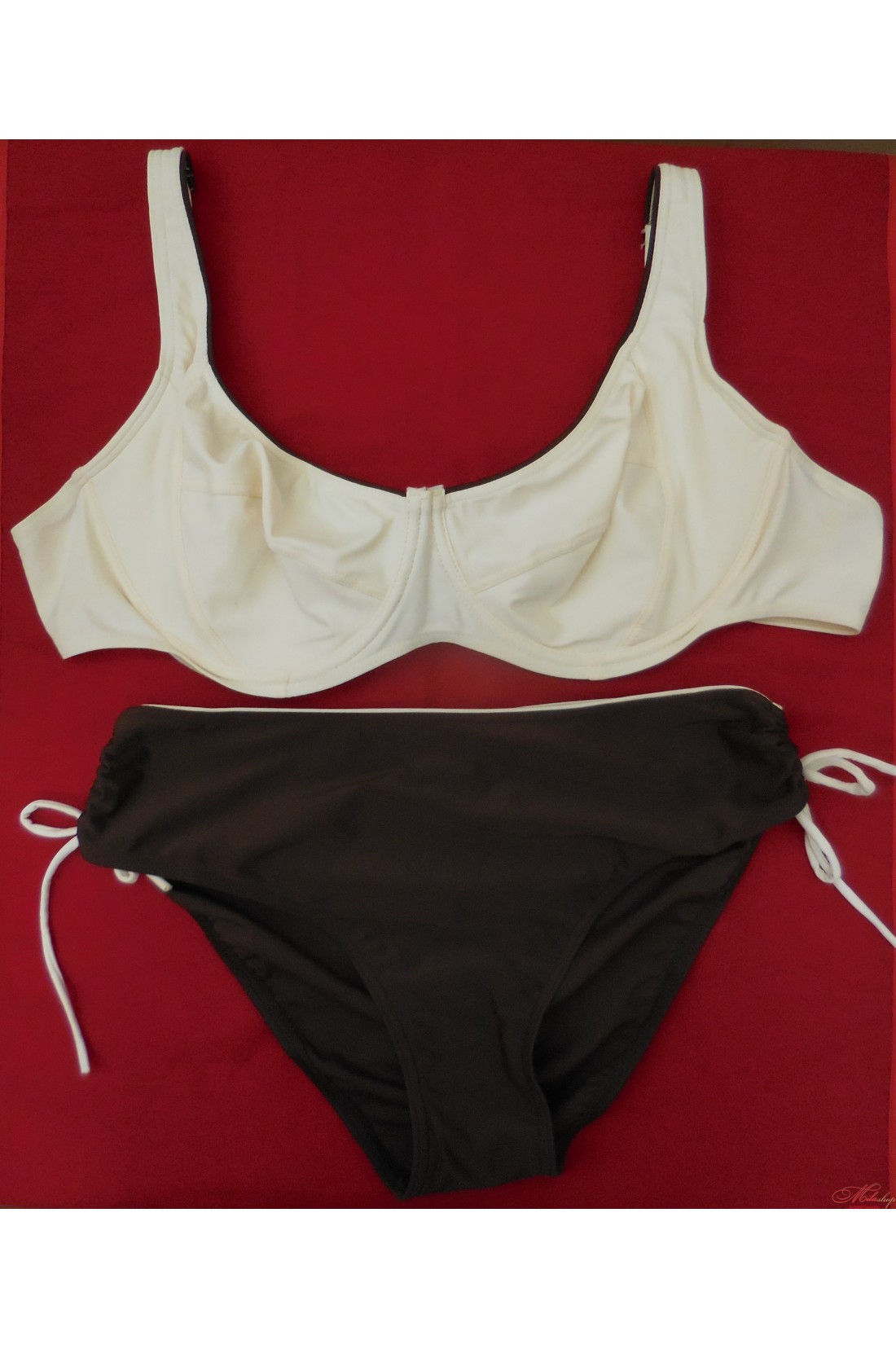 Купальник женский больших размеров. Чашечка на кости, без поролона. На спине застегивается. Низ купальника регулируется завязками.