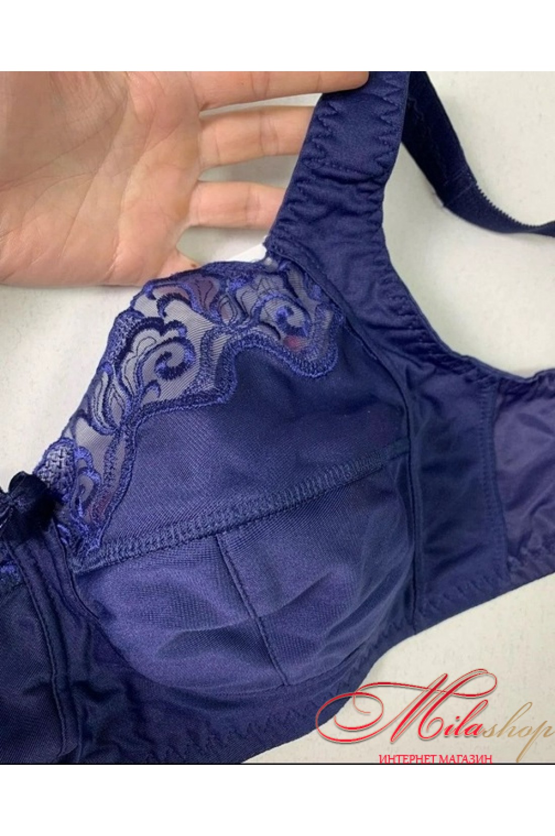 Отличный бюстгальтер с мягкими чашками из трикотажного полотна без косточек. Верхняя часть чашки украшена красивым кружевом. Широкая усиленная бретель регулируется по длинне.
