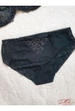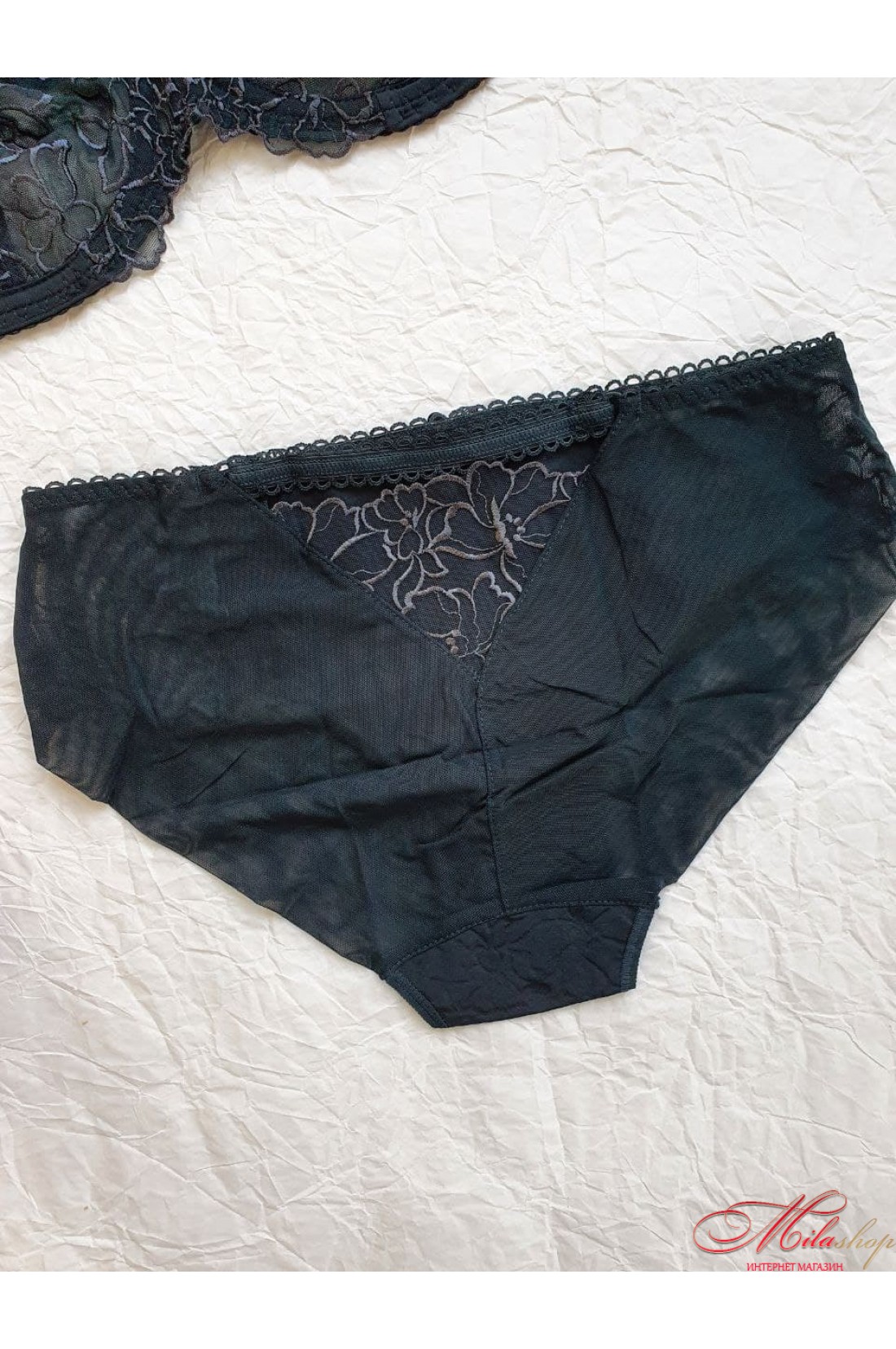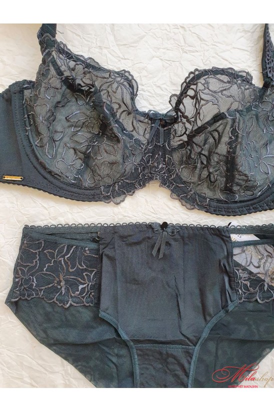 Легкий комплект с мягкими чашками на косточках, которые сближают и приподнимают грудь. Бретели не съемные, регулируются по длине. Пояс бюстгальтера гладкий, внутри с микросеточкой, с боковой косточкой для лучшей поддержки. Трусики-слип выполнены из микрофибры и мягкой микросетки с вышивкой. Средняя линия талии. Задняя деталь из микросетки с вертикальным швом, не выделяется под одеждой.