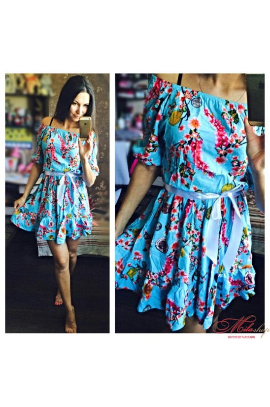 Молодежный летний сарафан. Выполнен из высококачественного хлопкового полотна. Оригинальности добавляет насыщенность голубого цвета в сочетании с цветочным принтом. Размер S ( благодаря особому пошиву подойдет на M, L)