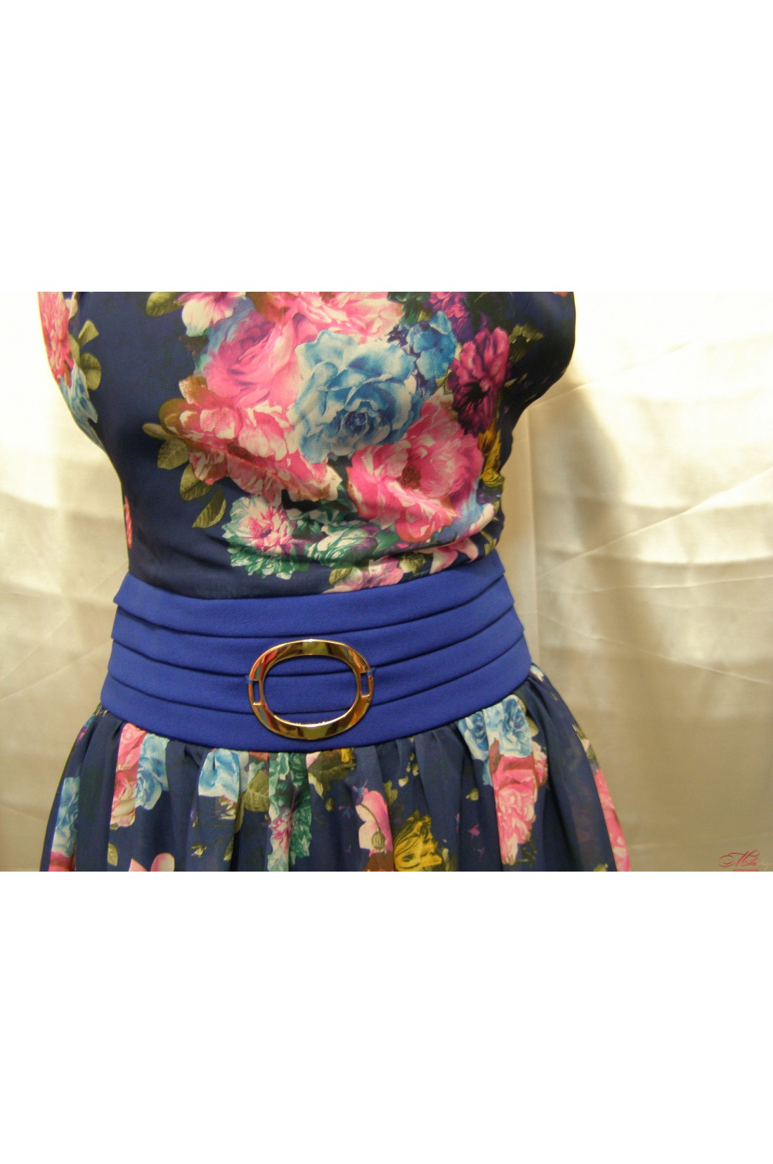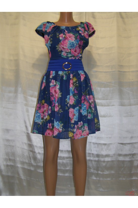 Летний сарафан из нежнейшего шифона. Короткий рукав. Широкий пояс акцентирует внимание на талии. На спинке змейка. Сарафан украшен цветочным принтом.