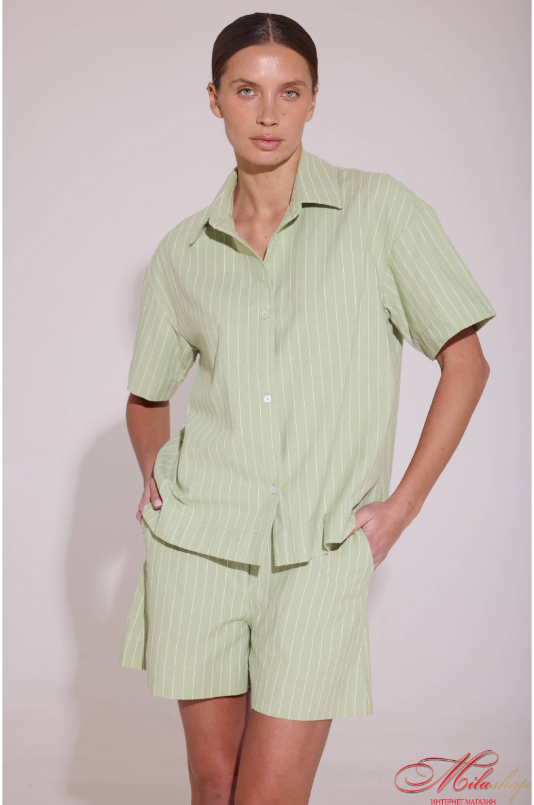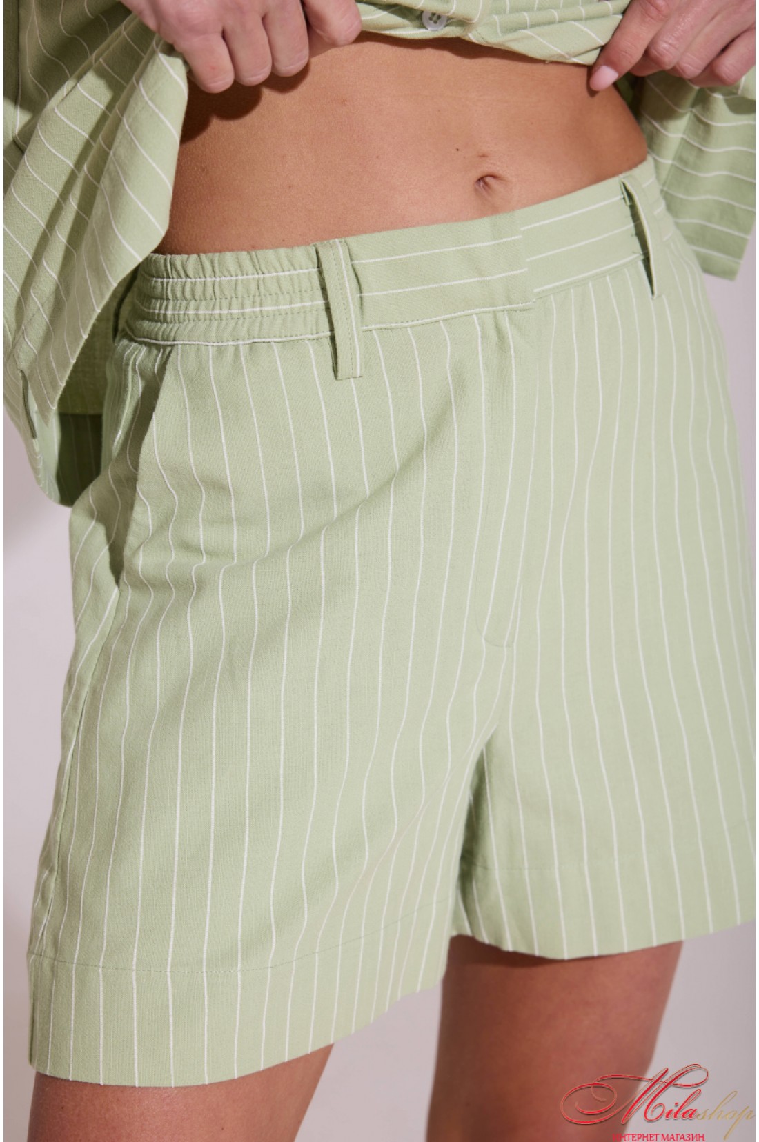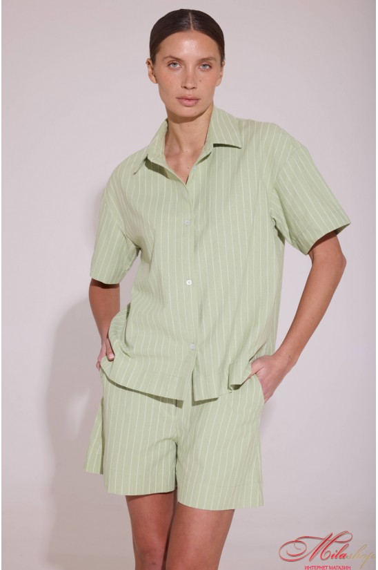 Легкость, свежесть и безупречный комфорт — этот костюм создан для жарких дней, когда хочется выглядеть стильно без лишних усилий: комплект состоит из свободной рубашки с коротким рукавом и идеально садящихся по фигуре шорт, не сковывая движений, а тонкая вертикальная полоска визуально вытягивает силуэт и мягенький силуэт; натуральная ткань приятна к телу, позволяет коже дышать и дарит ощущение прохлады даже в самые жаркие дни, рубашка имеет свободный силуэт и застежку на пуговицах, а шорты — удобный полусвободный крой с боковыми карманами, поясом с застежкой-гульфиком, эластичным. для прогулок, отдыха, путешествий и стильных casual-образов. Состав: 82% хлопок, 9% лен, 9% полиэстер.