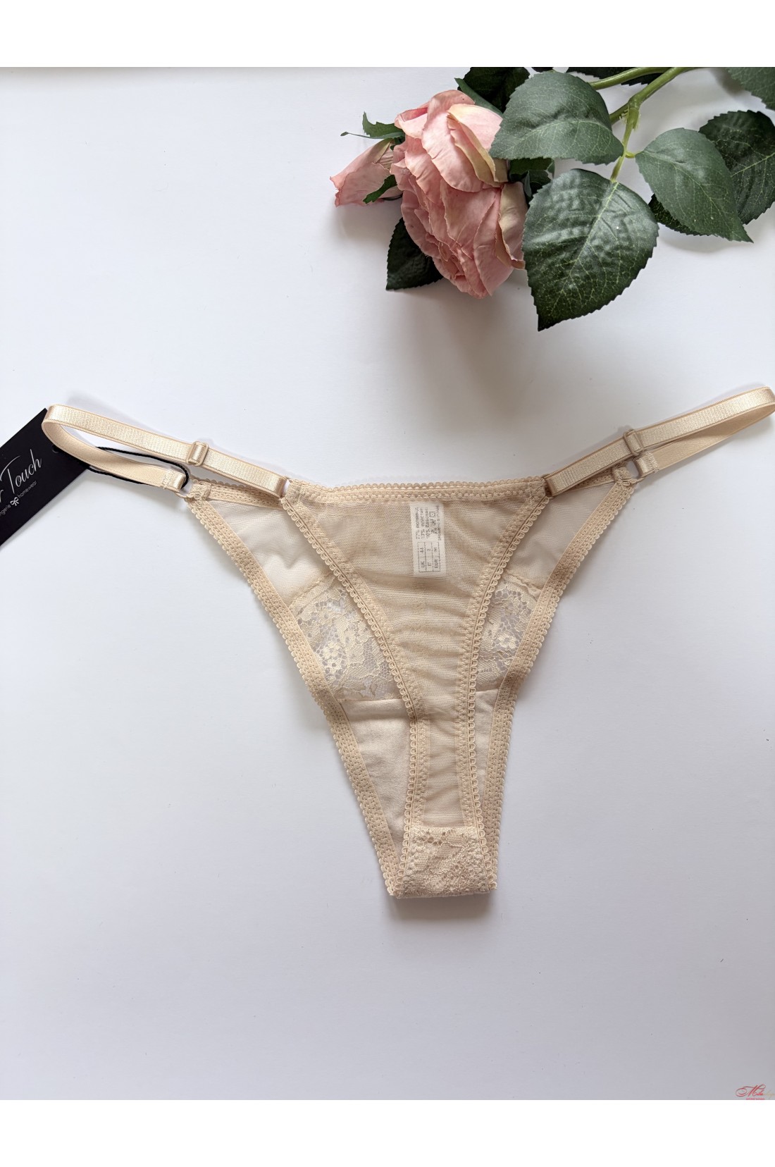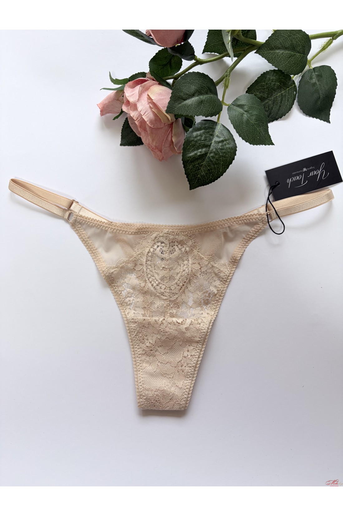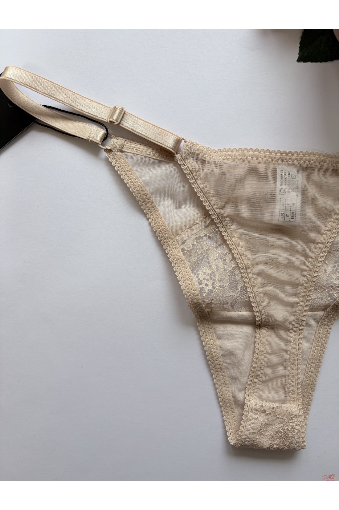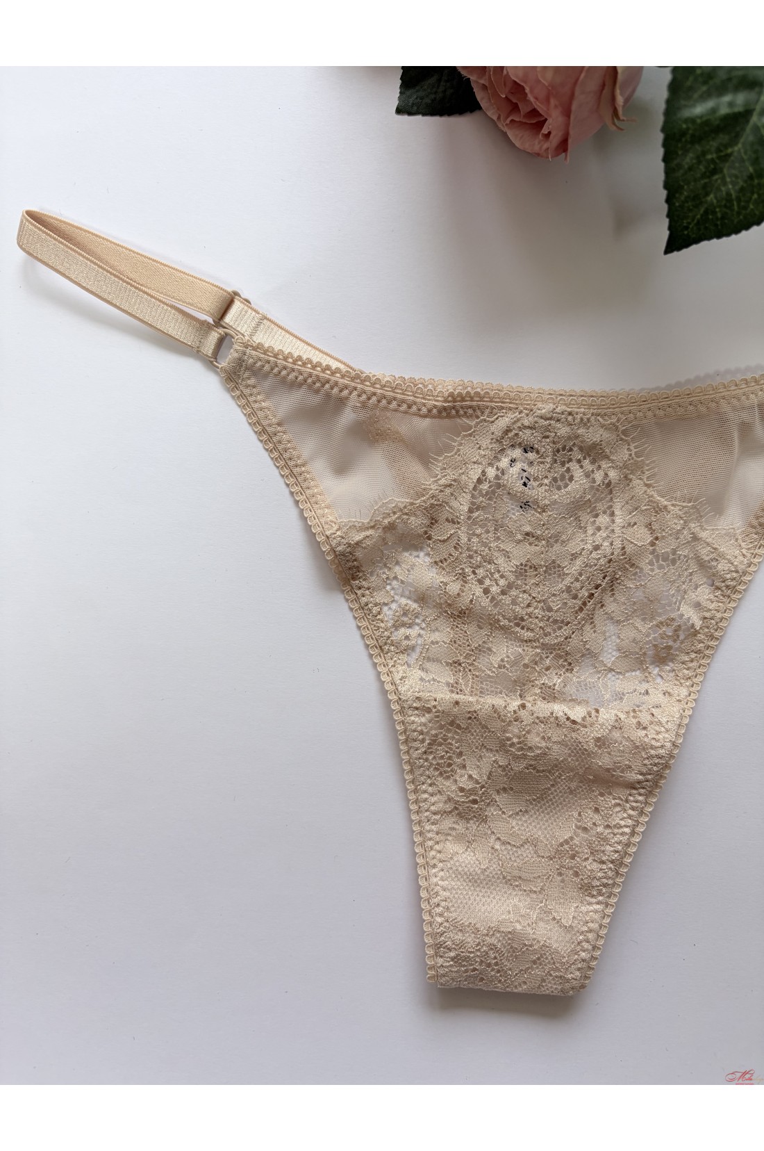 Трусики стринги из деликатного кружева с цветочным узором, средняя линия талии, тонкие боковинки регулируются по длине, посадка на бедрах регулируется, хлопчатобумажная гигиеническая ластовица.