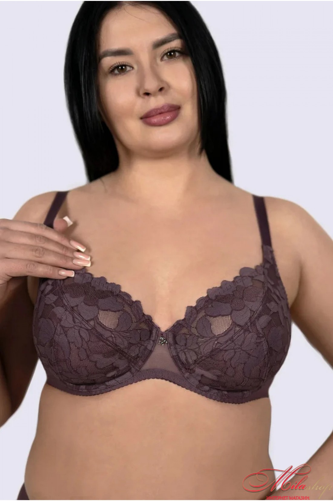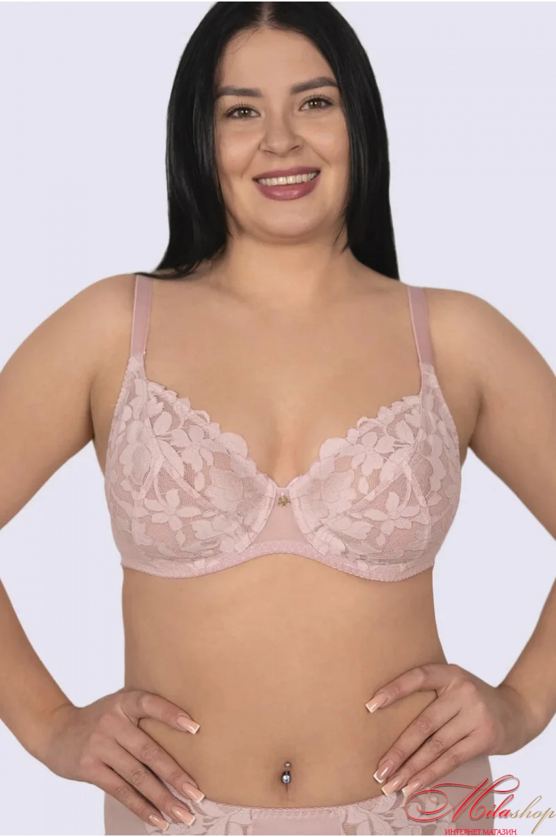 Бюстгальтер из текстурного кружева с цветочным узором. Мягкие сшивные чашки на косточках поддерживают пышную грудь и не добавляют обьем, придают груди округлую форму. Изнутри чашки дублированы стабилизирующей микросеткой, защищают от натирания. бретели не отстегиваются, регулируются по длине, ширина бретелей 1,5-2 см (зависит от размера). Застегивается на спине: 2 ряда крючков, гладкая анатомическая спинка.