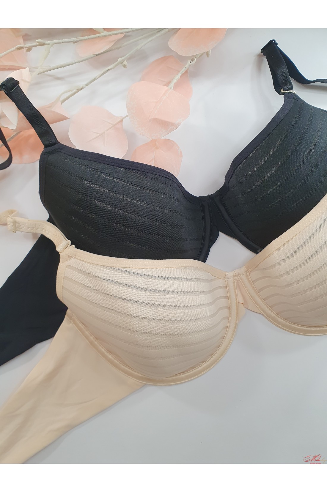 Бюстгальтер из тонкого поролона, с красивыми чашками с добавление сетчатого полотна. Хорошо поддерживает грудь. Бретельки регулируются по длине.