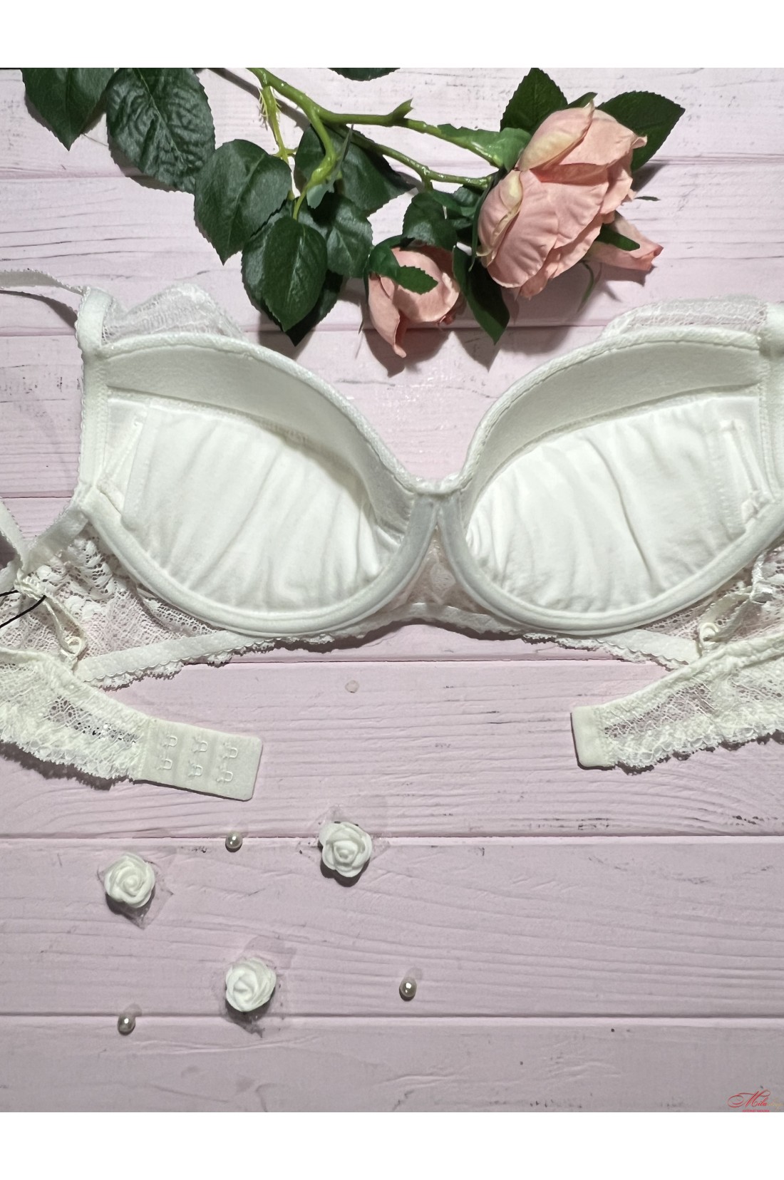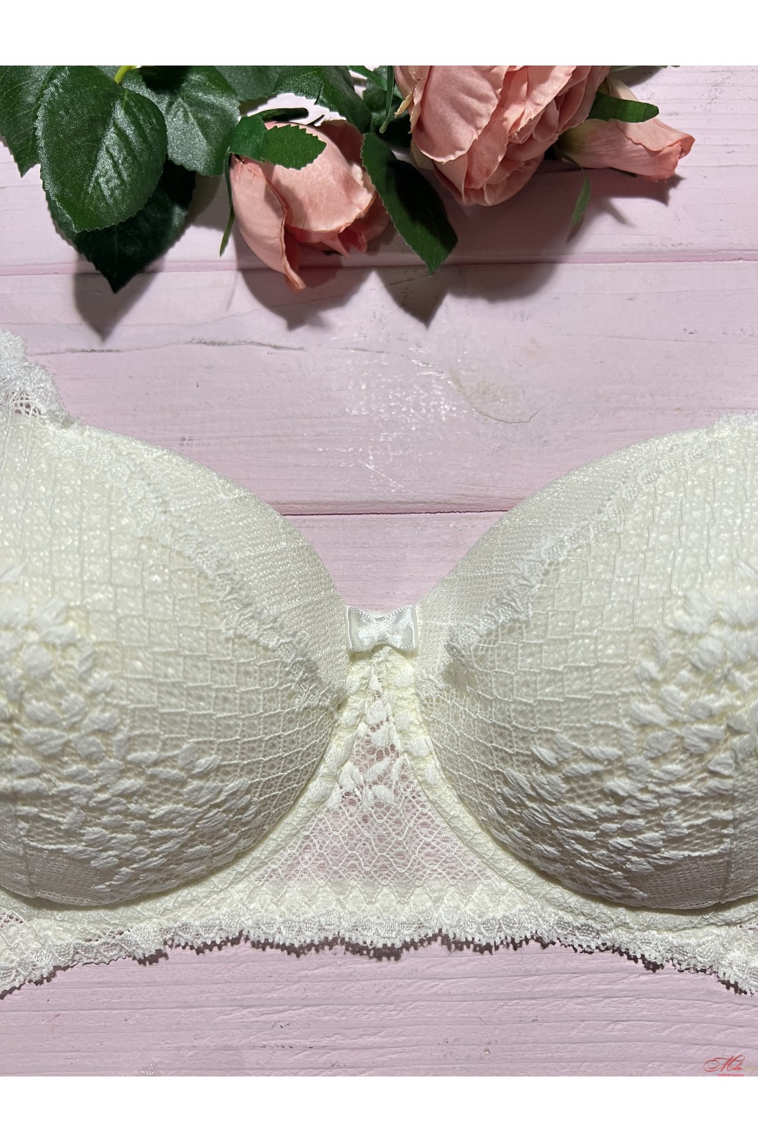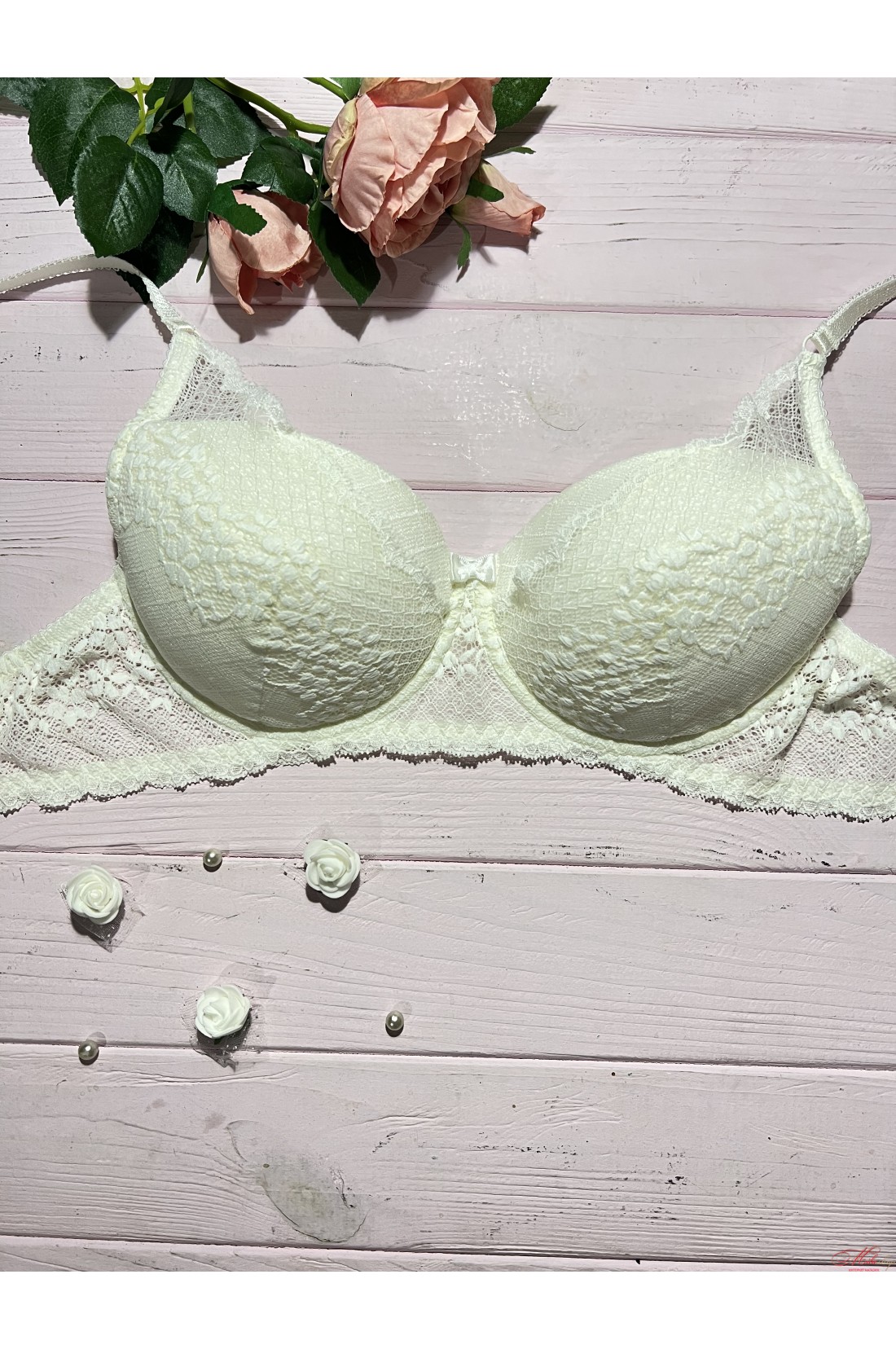 Изумительный бюстгальтер выполнен из мягких, дышащих материалов и необыкновенного кружева. Мягкие чашки на тонком поролоне со съемным пуш-ап. Бретель не отстегивается, регулируется по длине.