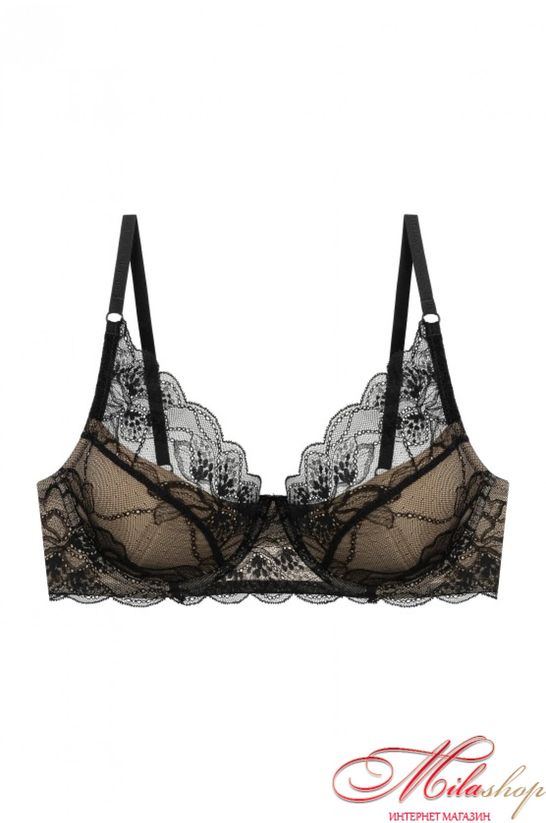 - верхняя деталь чашки из кружева высокая, плавно переходящая в бретель;