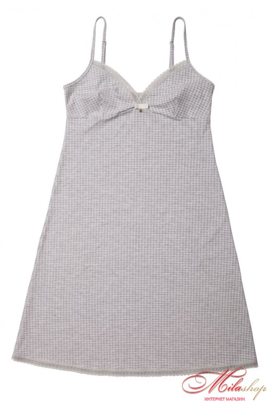 Милая сорочка с мелким принтом. Отрезные чашки без косточек, бретели регулируются по длине. Длина средняя.