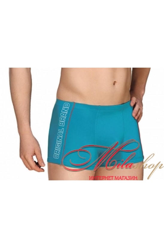 Мужские трусы-боксеры из высококачественного хлопкового полотна с тонкой внутренней резинкой. Сбоку украшены надписью контрастного цвета.