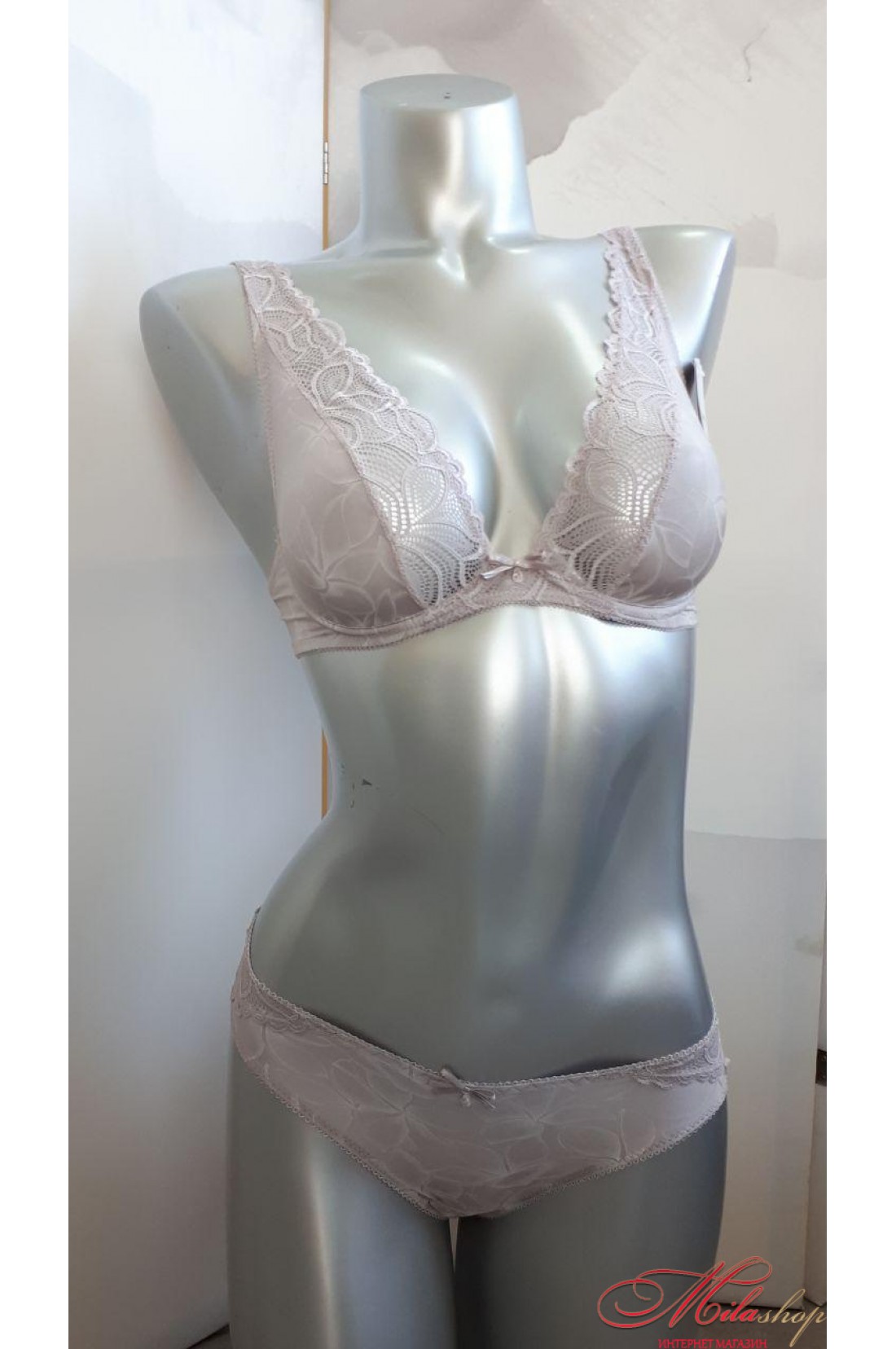 - бюстгальтер из французского принтованного полотна и элегантного кружева;