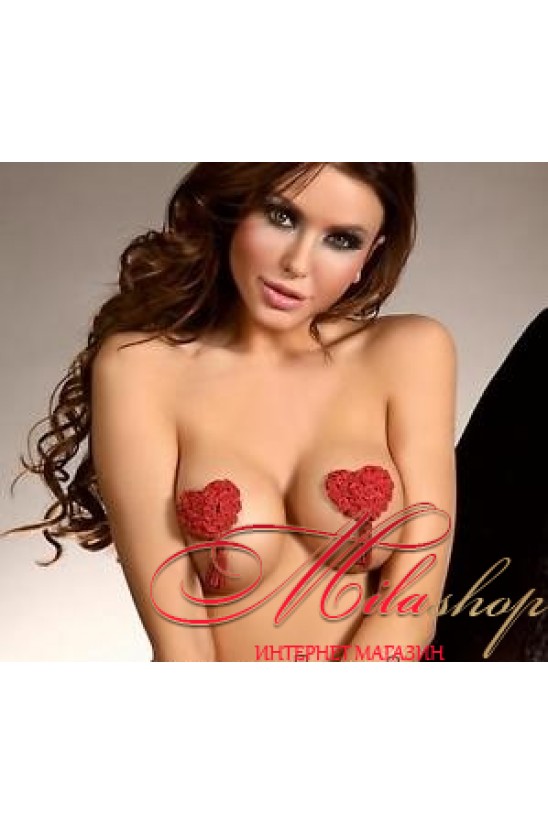 Многоразовые наклейки для груди бордового цвета. В форме милых сердечек с кисточками на вершинах.