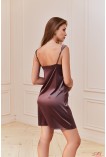 - Сорочка из нежного атласа с глянцевым блеском. Атласное полотно приятное к телу, хорошо пропускает воздух, создает эффект прохлады на теле. Приталенный крой, плечевые широкие бретели не отстегиваются, регулируются по длине сзади.