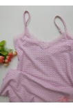 Ночнушка выполнена из мягкого и качественного хлопка в оригинальный принт - маленькие цветочки. Полуприлегающего силуэта, на тонких регулируемых бретелях. Линия V-образного декольте модели украшена вставками из ажурного кружева розового цвета.