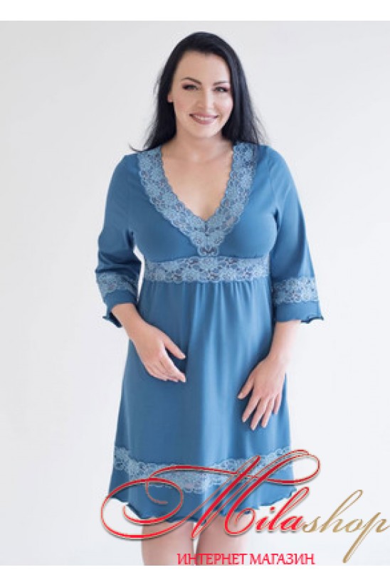 Женская ночная сорочка из хлопка от николаевской фабрики Marsana. Модель пошита из высококачественного, приятного к телу натурального полотна европейского производства. Благодаря добавлению полиамида и эластана при стирке ночнушка не сядет и не потеряет свою первоначальную форму. Модель средней длины (до колена), рукав три четверти. Края рукавов и подол обработаны оверлоком, благодаря чему формируется красивая волна по краю. Вырез горловины декорирован фирменным кружевом Текстроник. Вставки из такого же кружева находятся на рукавах, подоле и под грудью. Ночная сорочка отлично подойдет в качестве подарка.