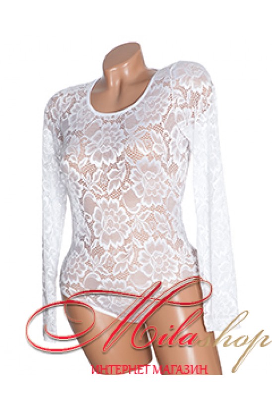 Чувственное боди из нежного эластичного, кружевного полотна, которое украшено романтичным цветочным узором. С длинным рукавом.