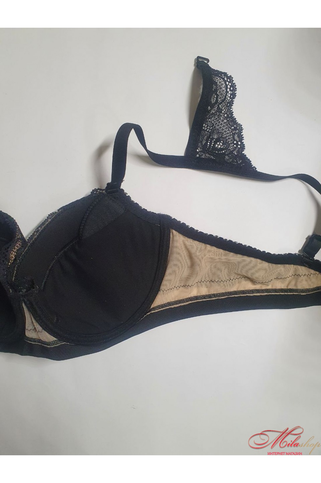 Красивый элегантный бюстгальтер со съемным пуш-ап придает эффект легкости. Чашки украшены красивым кружевом. Бретели съемные, регулируются по длине, на спинке украшены красивым кружевом.
