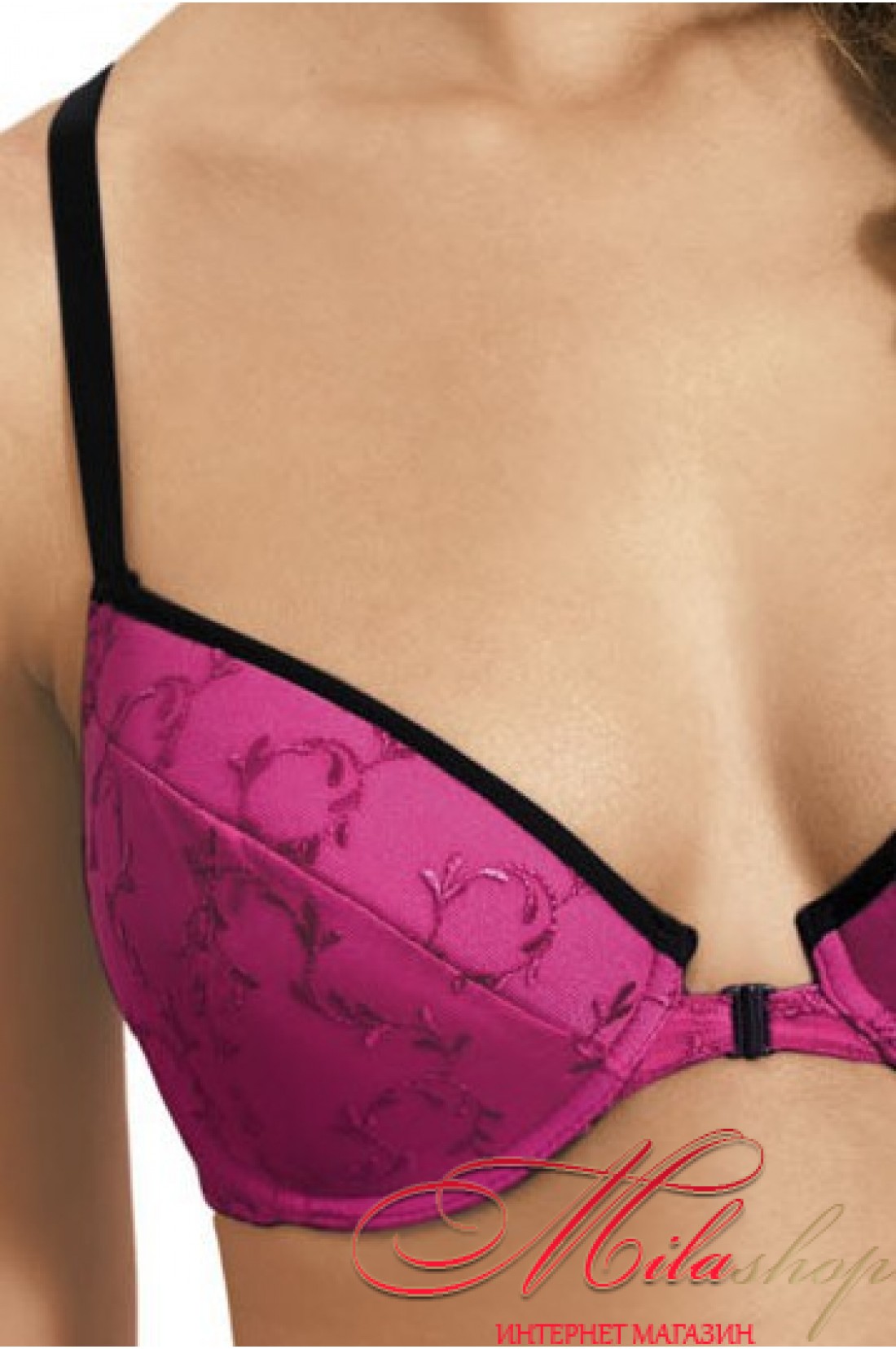Красивый бюстгальтер с прекрасной формой чашки. Чашки украшены красивой вышивкой, застежка спереди, интересная спинка бюста. Бретели регулируются по длине. Изумительное сочетание цветов и материалов.